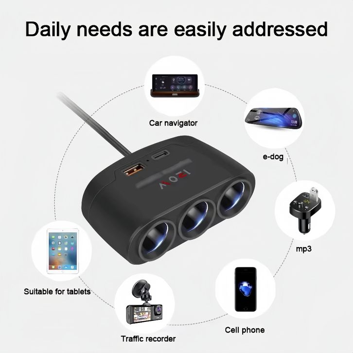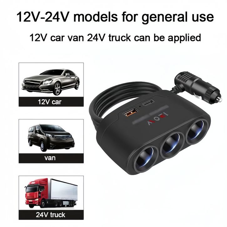 GROSIR Charger Mobil 3in1 2 Port USB Type C 120W QC3.0 Charger Mobil Colokan USB 3 Lubang Soket Lighter
