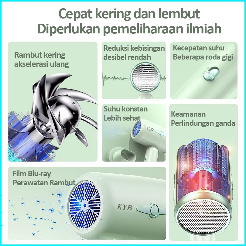 2025 Kyb Hair Dryer Negative Ion Portable Low Watt 650w Pengering Rambut Hair Protection Quick Drying