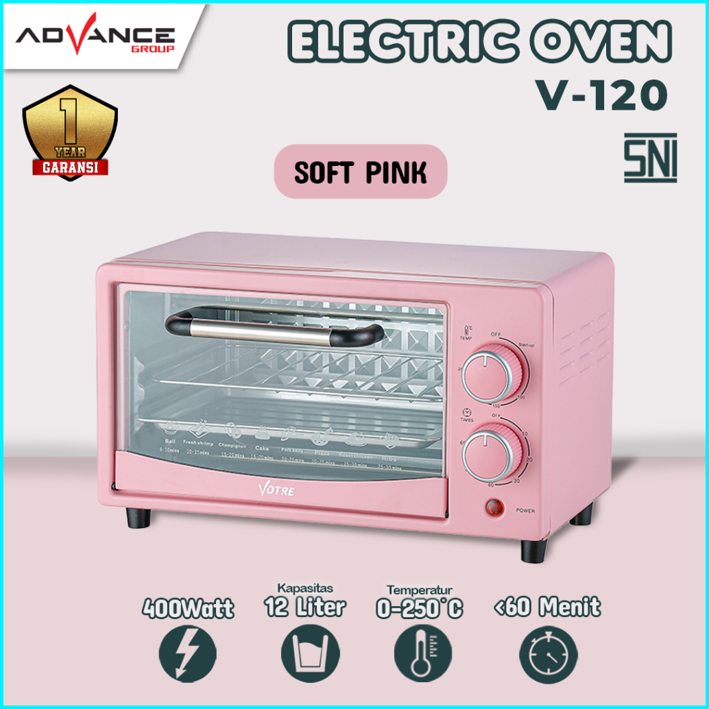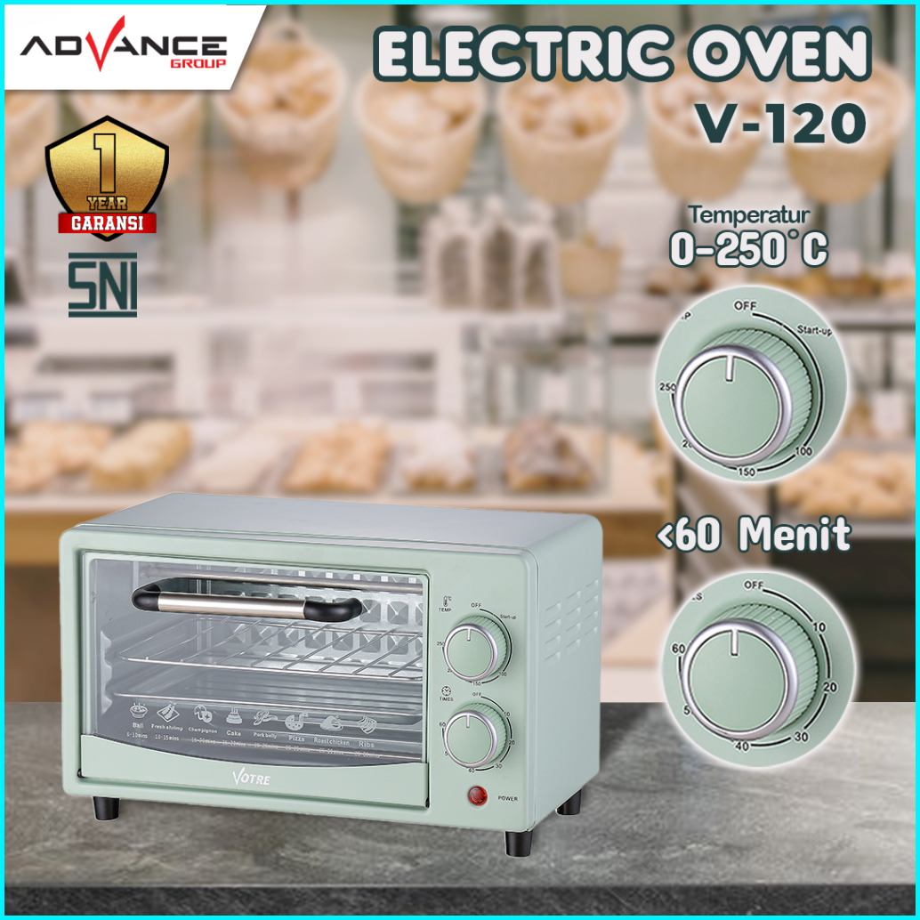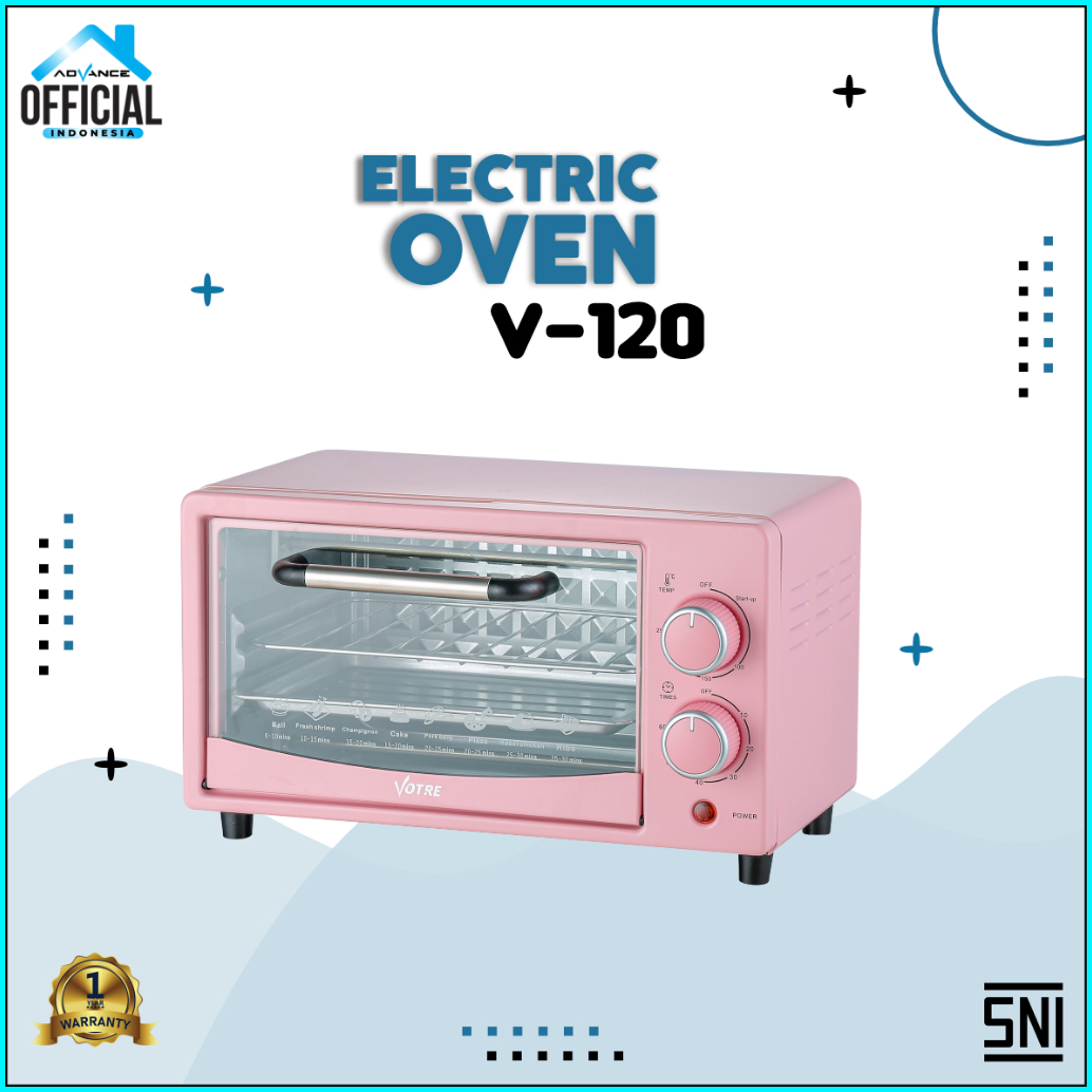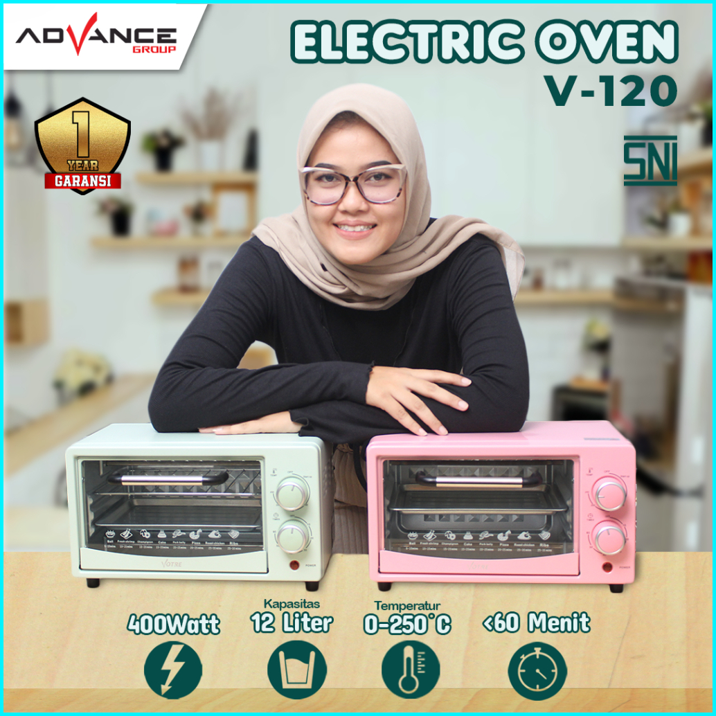 Ready Advance Oven Listrik V-120 Kapasitas 12l Pemanas Atas Bawah Stainless Steel Low Watt 400 Watt Garansi 1 Tahun