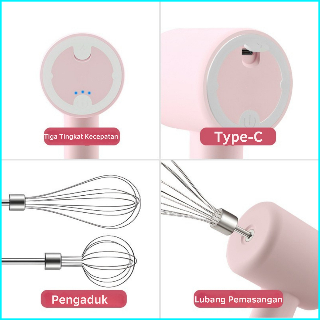 Wjoy Mixer Electric Mini Wireless Pengaduk Telur Adonan Portable Dapat Dua Jenis Pengaduk Stainless Steel Rechargeable U