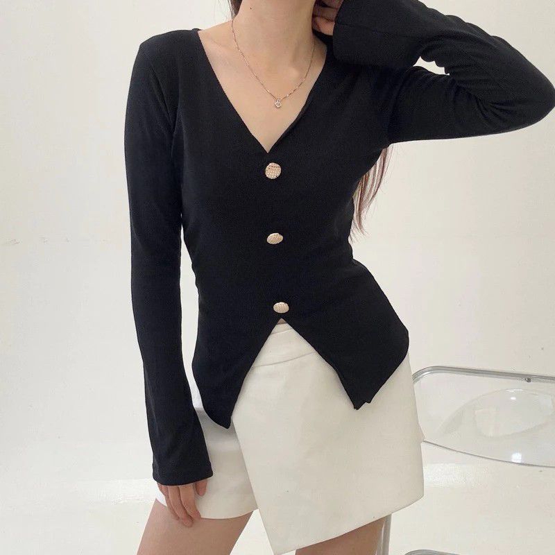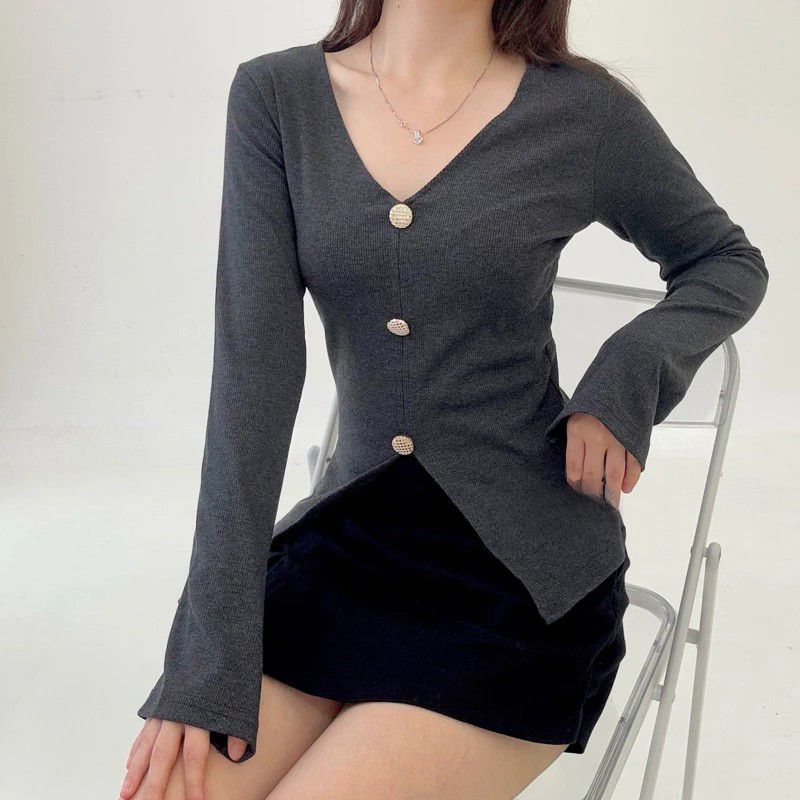 Atasan Wanita Longsleeve Lengan Panjang Bahan Rib Knit Premium Tebal Casual Blouse Wanita Crop Top