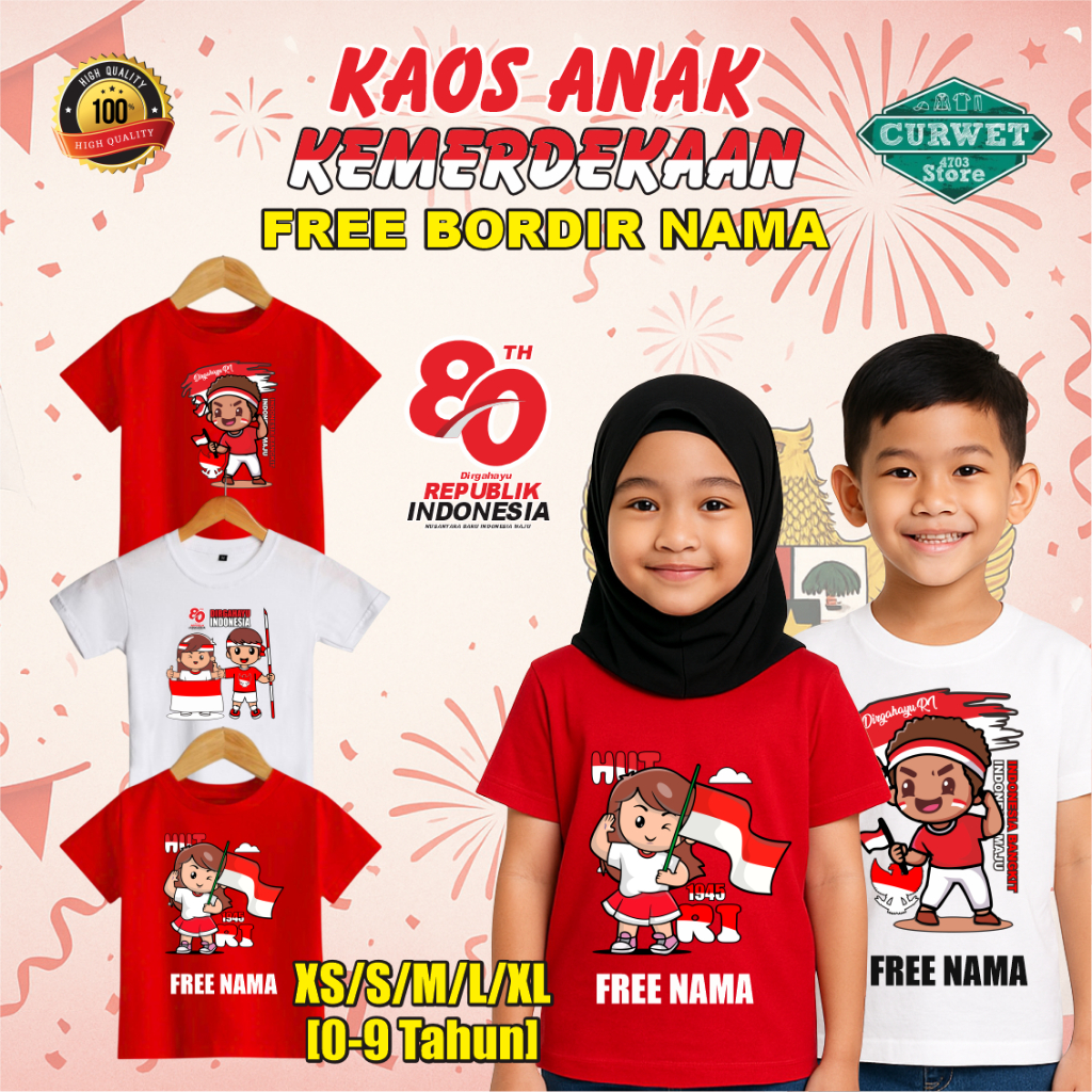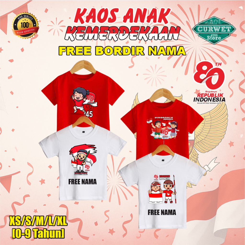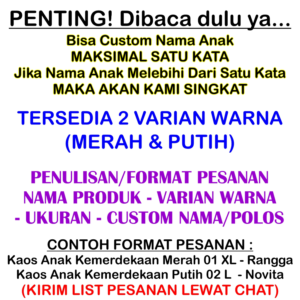 Kaos Anak Kemerderkaan Free Bordir Nama Semarak 17 Agustus