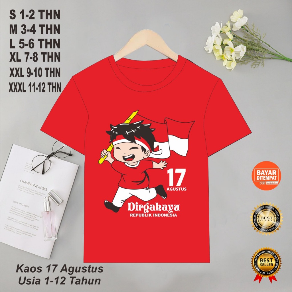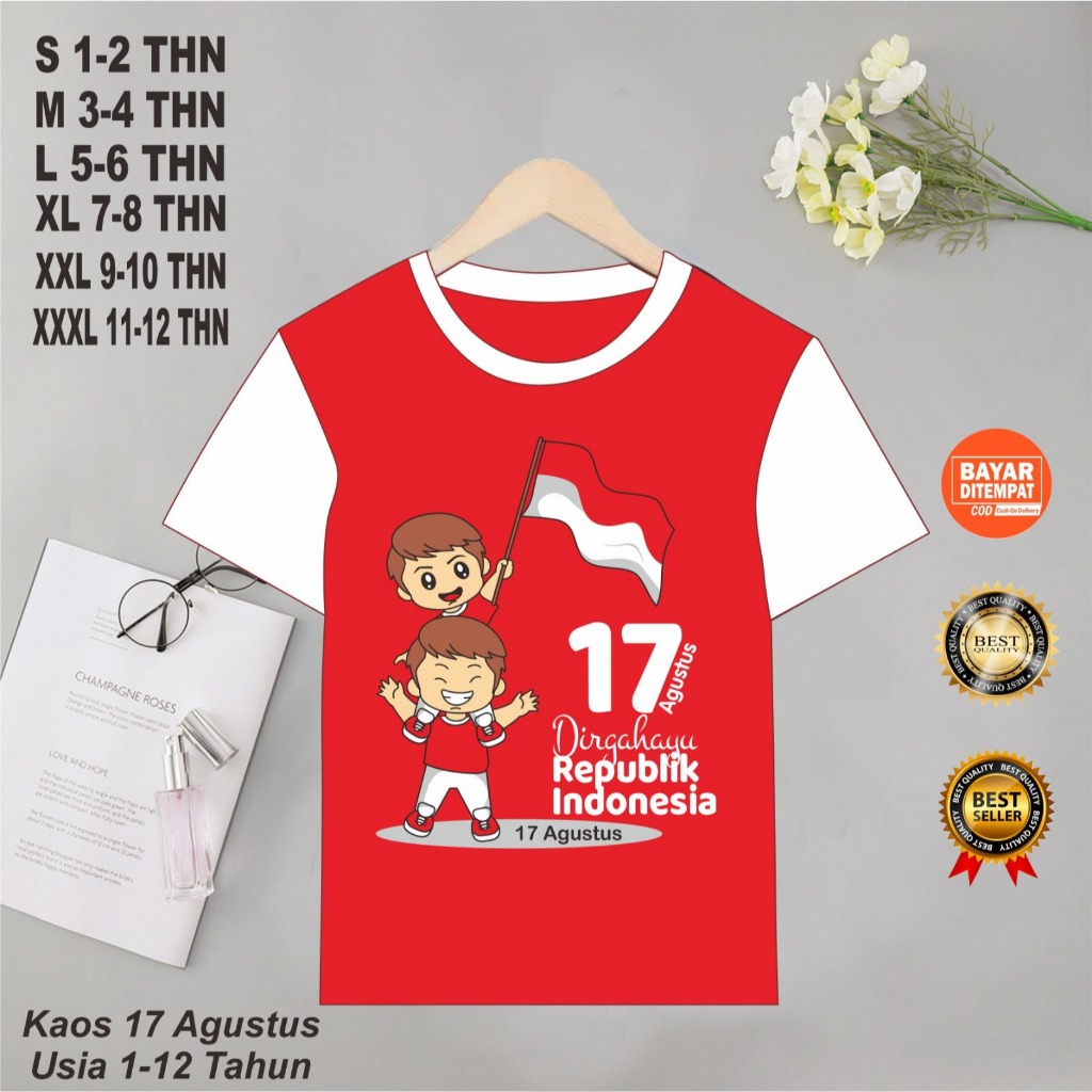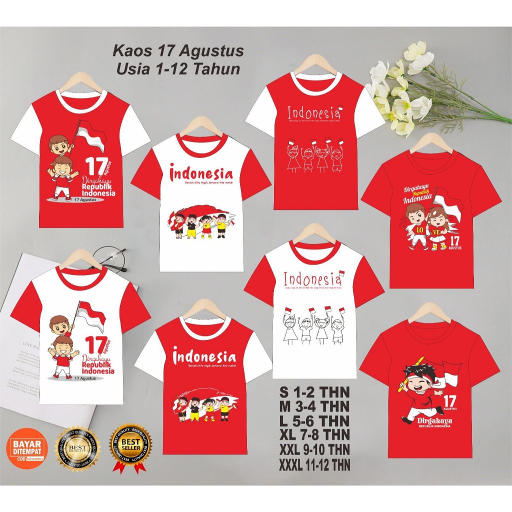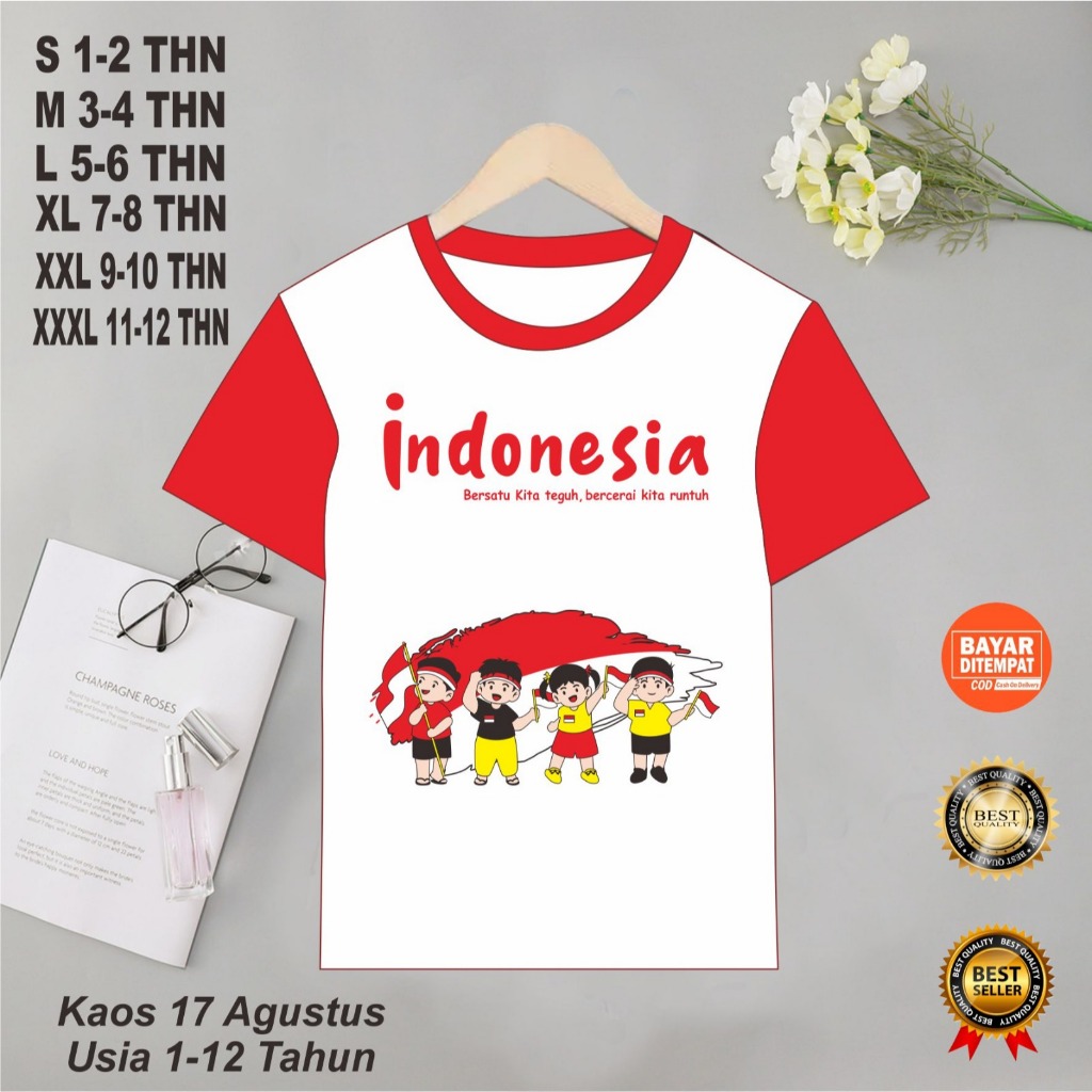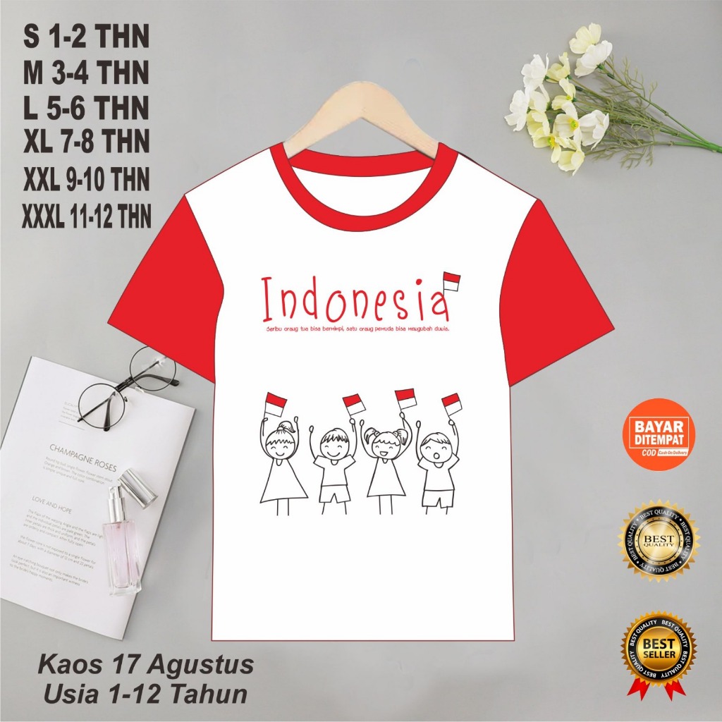 alkids88 - kaos anak anak motif 17 agustus warna merah dan putih usia 1-12 tahun