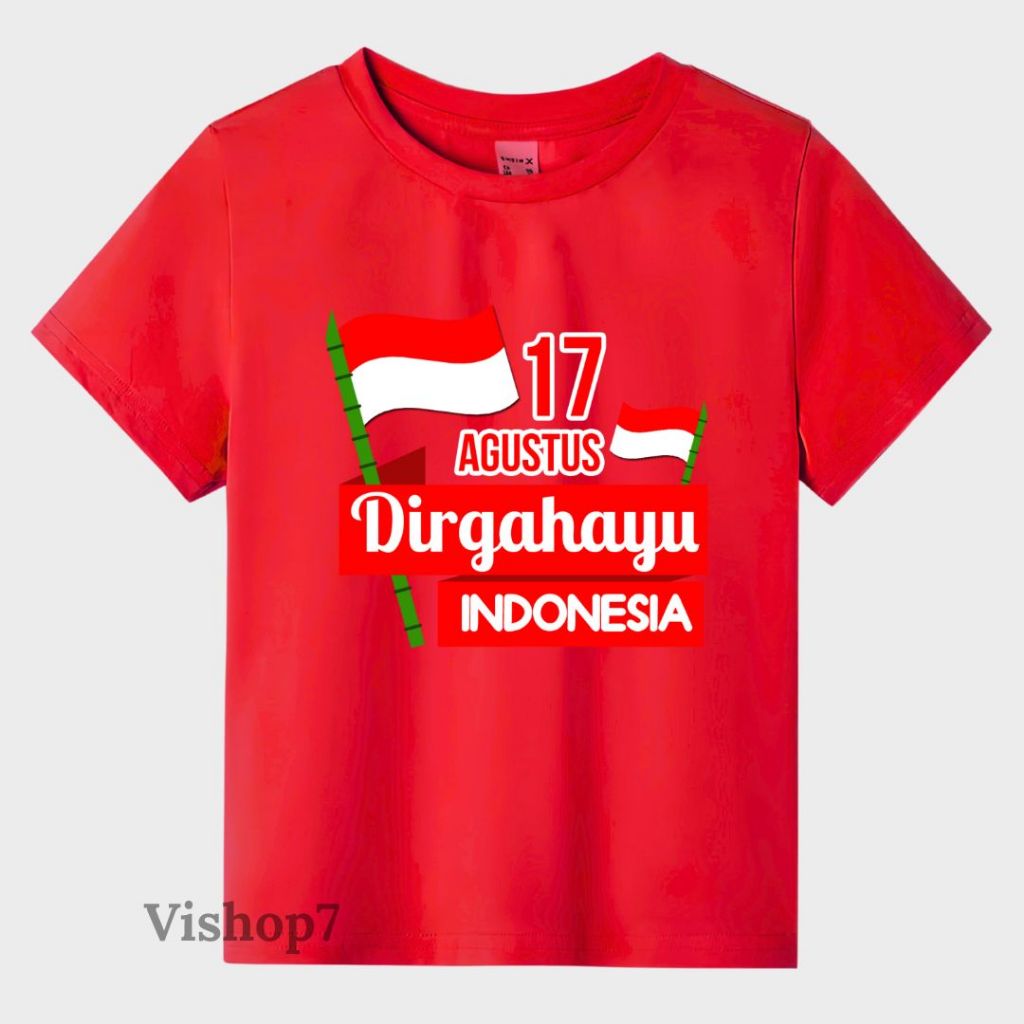 Kaos Anak 17 Agustus/HUT RI/Kemerdekaan Indonesia Warna Merah Laki-Laki Perempuan 2-16 Tahun
