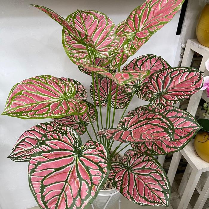 DAUN KELADI PINK STANDING Dekorasi standing Besi Pot Plastik daun latek Hiasan Tanaman
