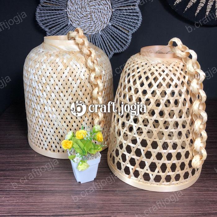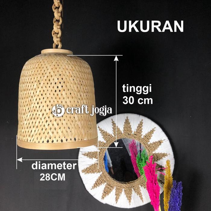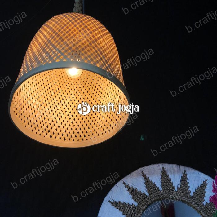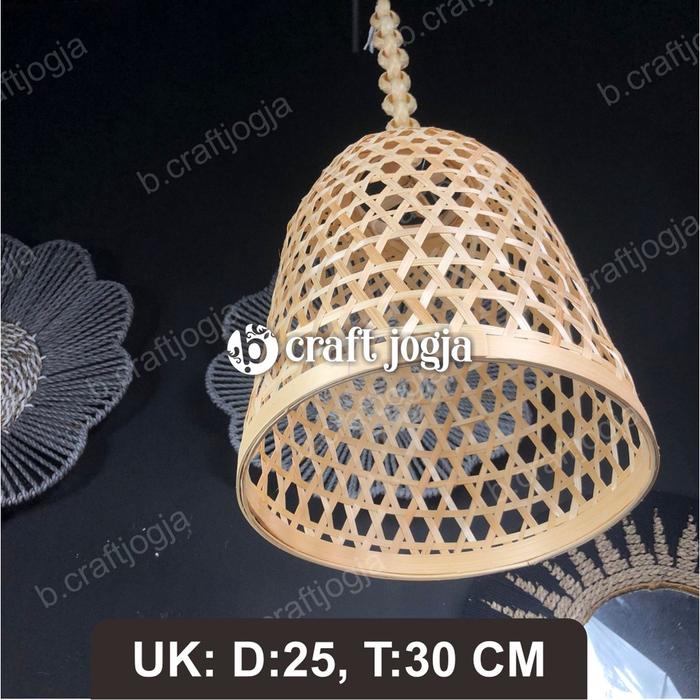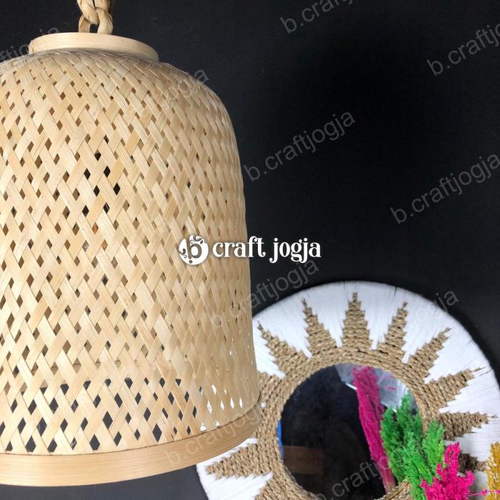 Kap Lampu Gantung Bambu (isi 1 pcs) Lampu Dekorasi Cafe Model Tabung size L Kerajinan Anyaman Bambu