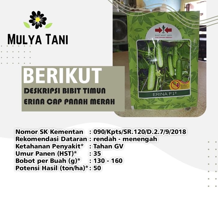 PROMO Benih Bibit Timun Lalap Erina F1 800 Butir/Biji Original Cap Panah Merah ORIGINAL