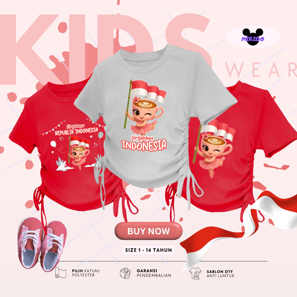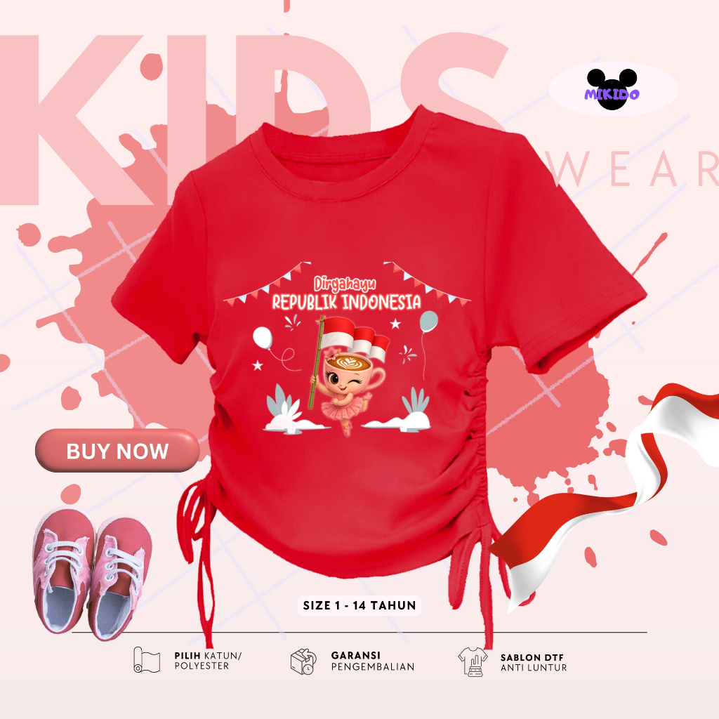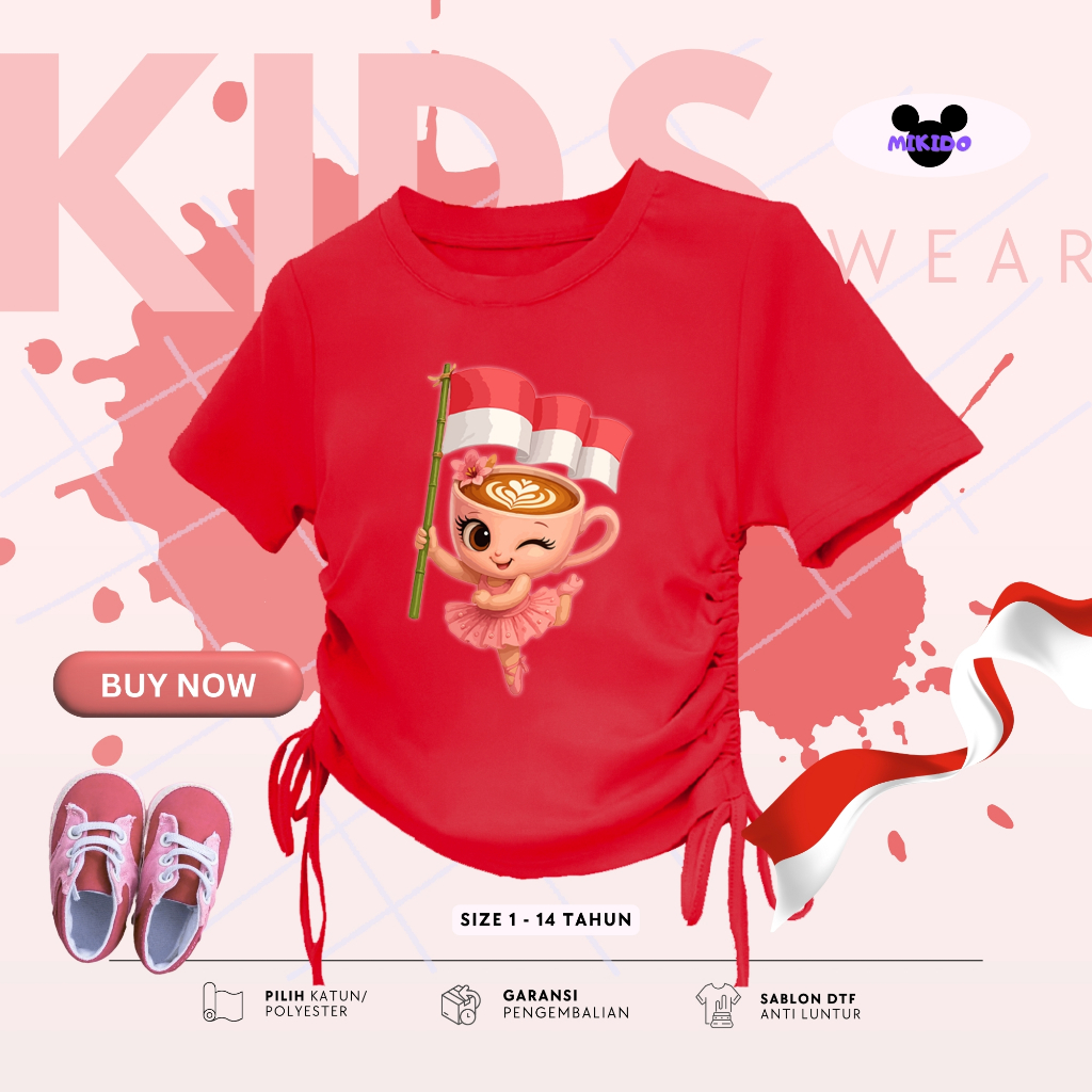 Kaos Serut Crop Top Anak Perempuan Kekinian Anomali Kemerdekaan Indonesia | Atasan 5 - 14 Tahun