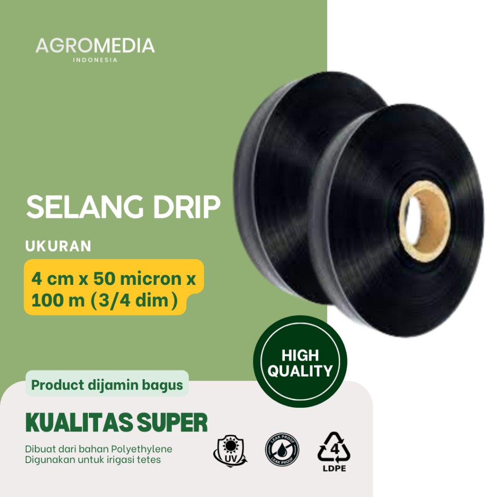 Selang Drip Irigasi 50 Mikron HYDROSOL Lebar 4 cm / Panjang 100 Meter
