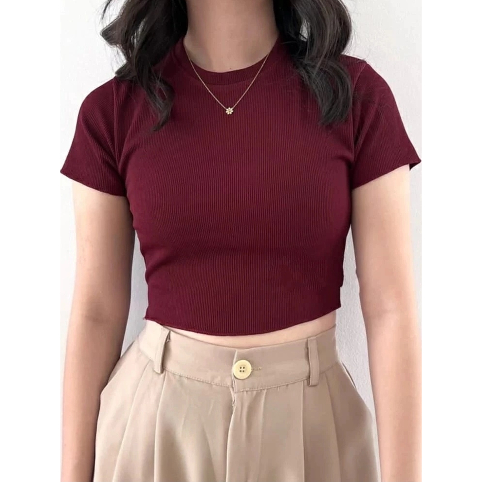 Basic Crop Wanita Knit Rib Crop Top penta02