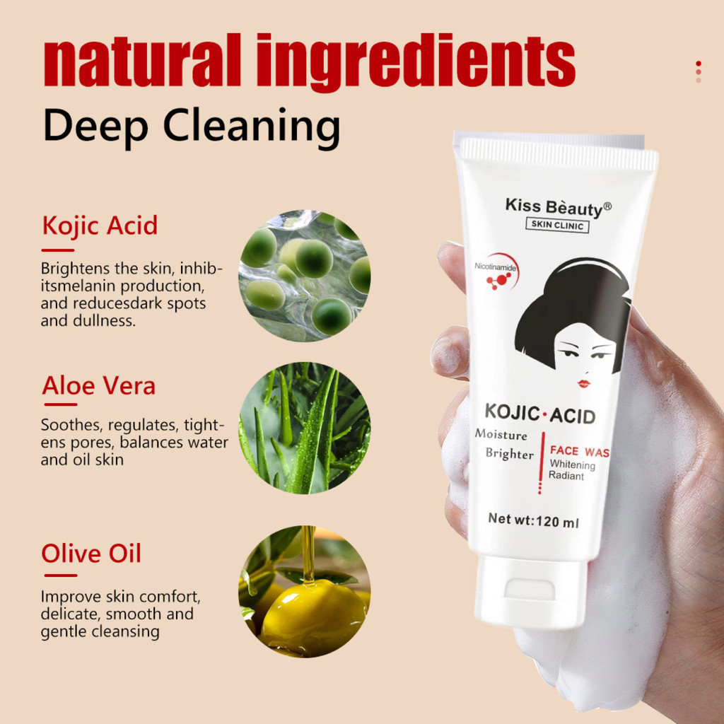facial wash 120g Pemutih Penghilang Flek Hitam Pembersih Wajah Pemutih Wajah Jerawat Kojic id skincare wanita glowing