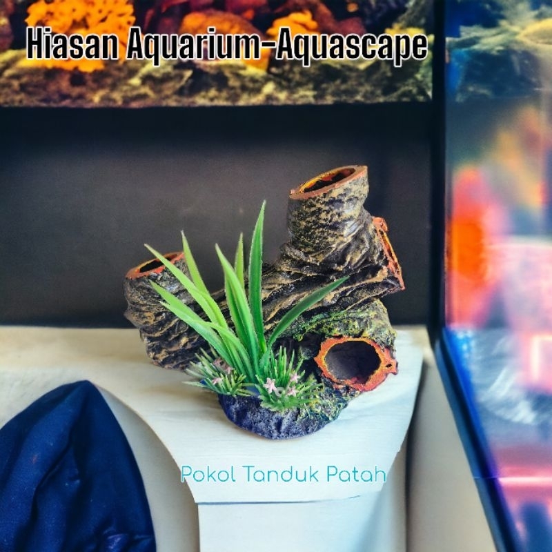 Hiasan Ornament Dekorasi Aquarium Aquascape Pokol Tanduk Patah