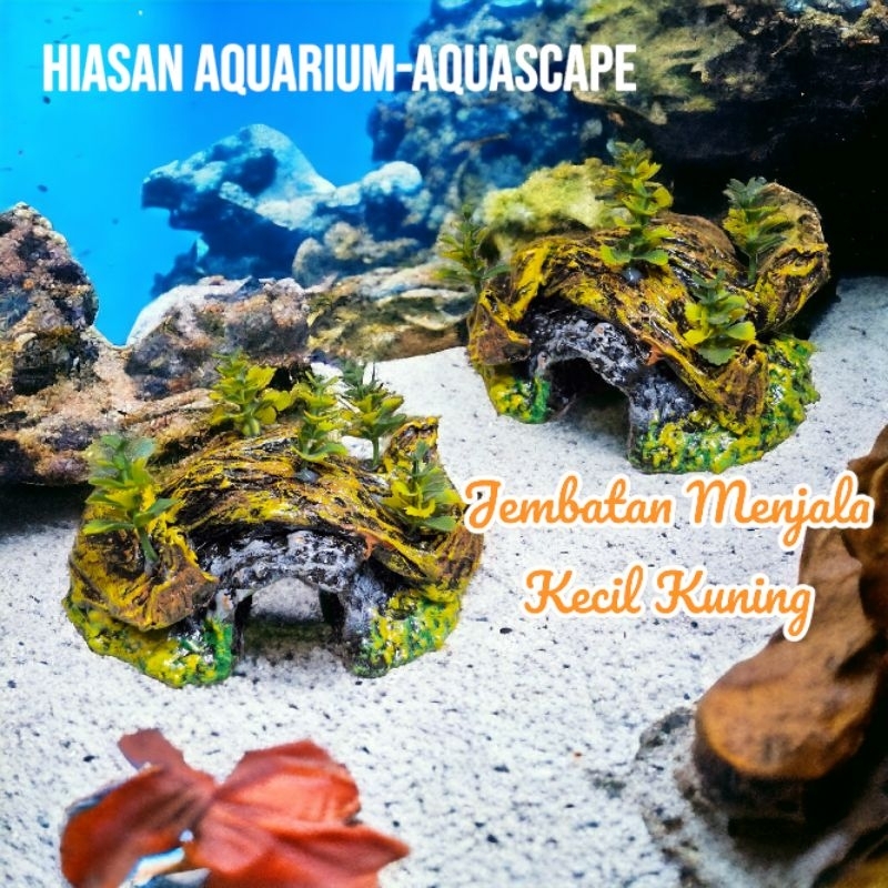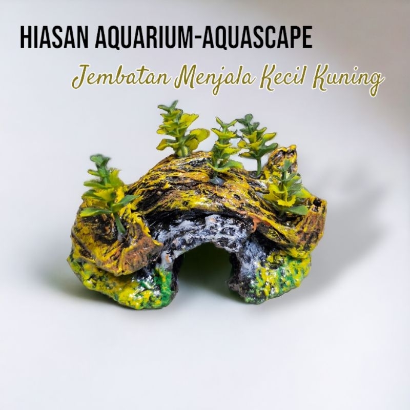 Hiasan Ornament Dekorasi Aquarium Aquascape Jembatan Menjala Kecil Kuning
