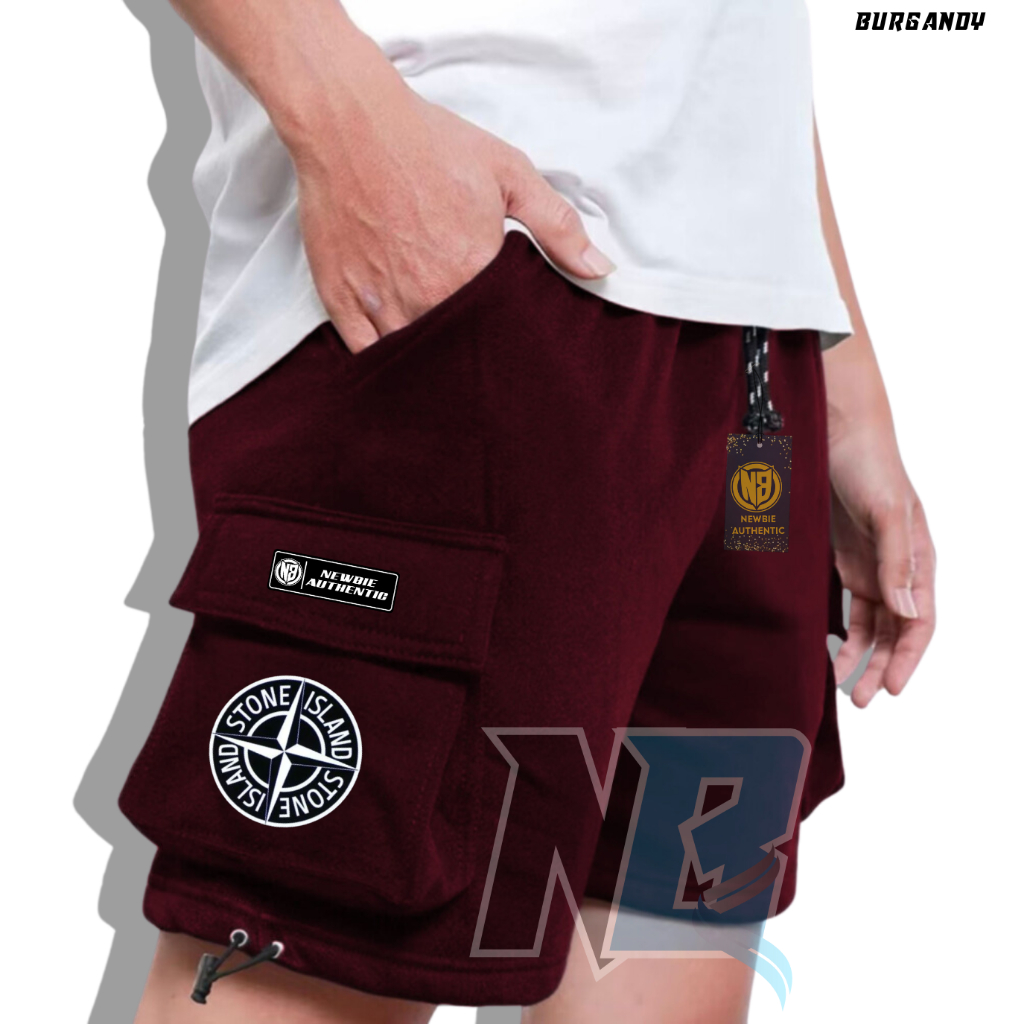 CELANA PENDEK CARGO FLEECE 280 BAHAN LEMBUT DAN ADEM BRAND LOCAL BANDUNG WARNA BURGANDY STONE ISLAND BEST SELLER HIGH QU