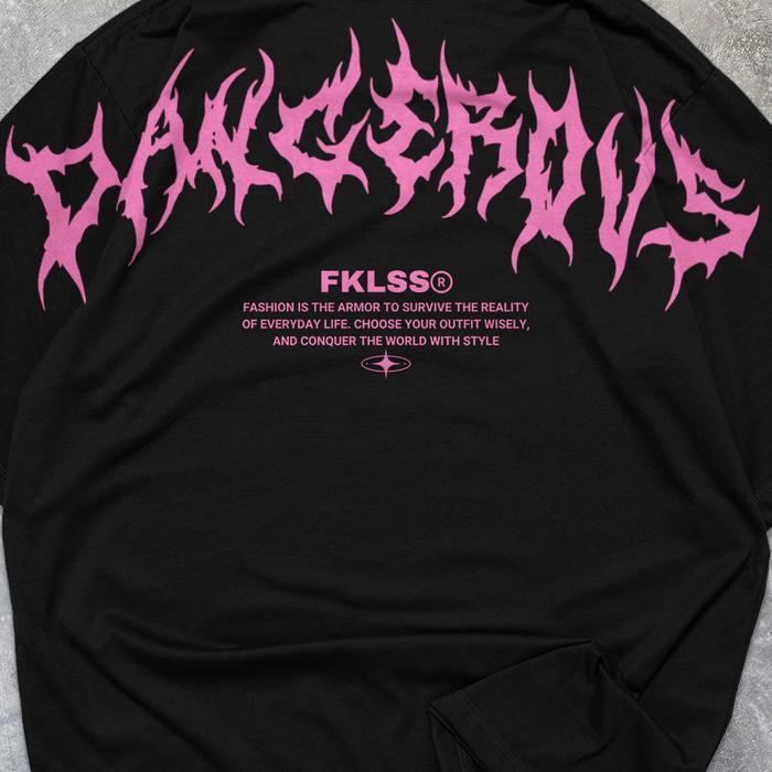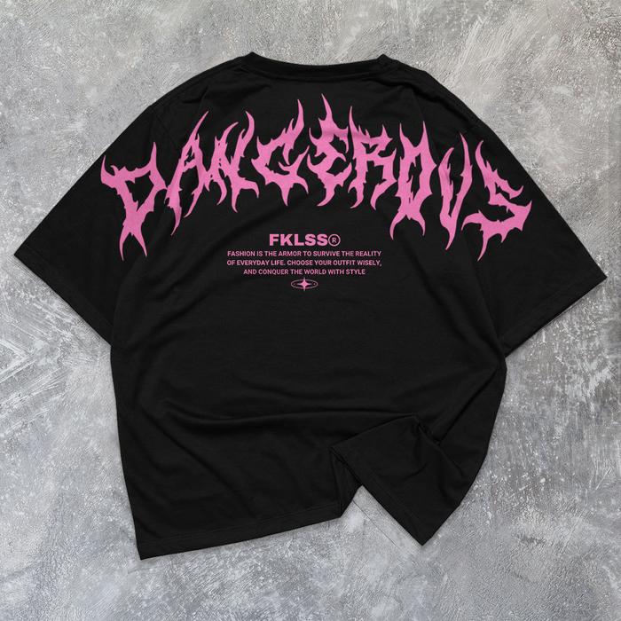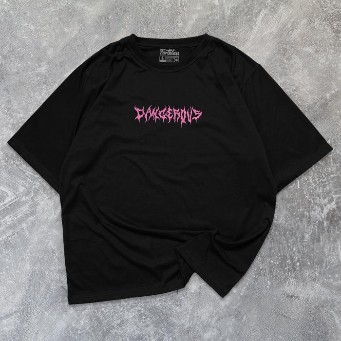 FortKlass Kaos Oversize DANGEROUS T-Shirt Cowok Premium Kaos Pria Lengan Pendek Jumbo Distro Oblong Baju Keren Combed kt