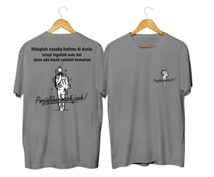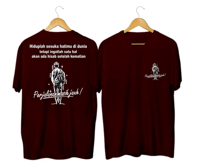 KAOS ATASAN KATAKATA PERJALANAN MASIH JAUH OBLONG COWOK DEWASA LENGAN PENDEK DISTRO GAMBAR DEPAN BELAKANG KEREN 71 Katun