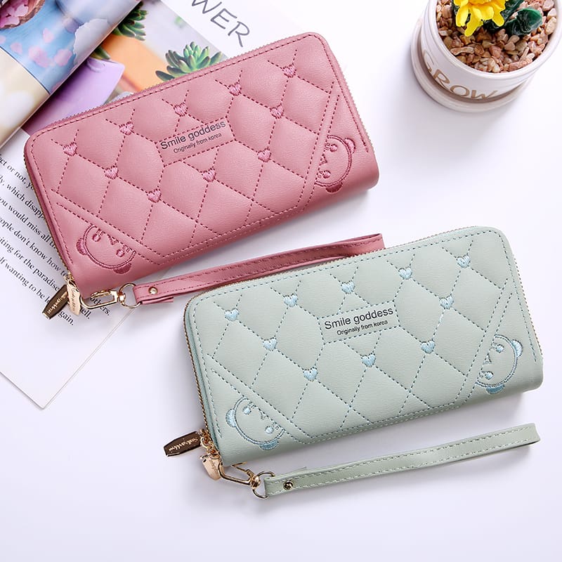 Smile Goddess Versi Korea Dompet Panjang Tas Ritsleting Wanita Dompet Koin D307