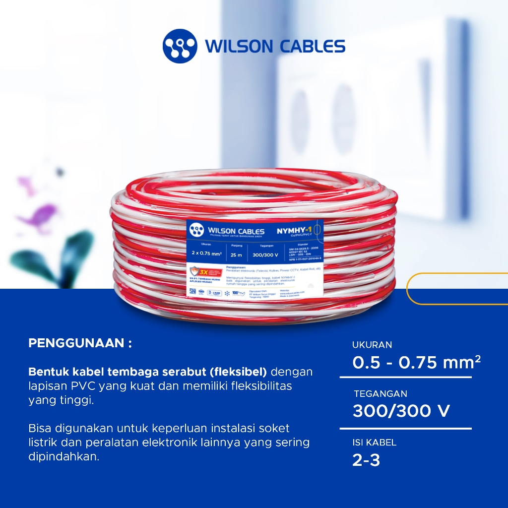 KABEL NYMHY-1 2X0.75 MM² 25 METER KABEL TEMBAGA SERABUT MERAH-PUTIH