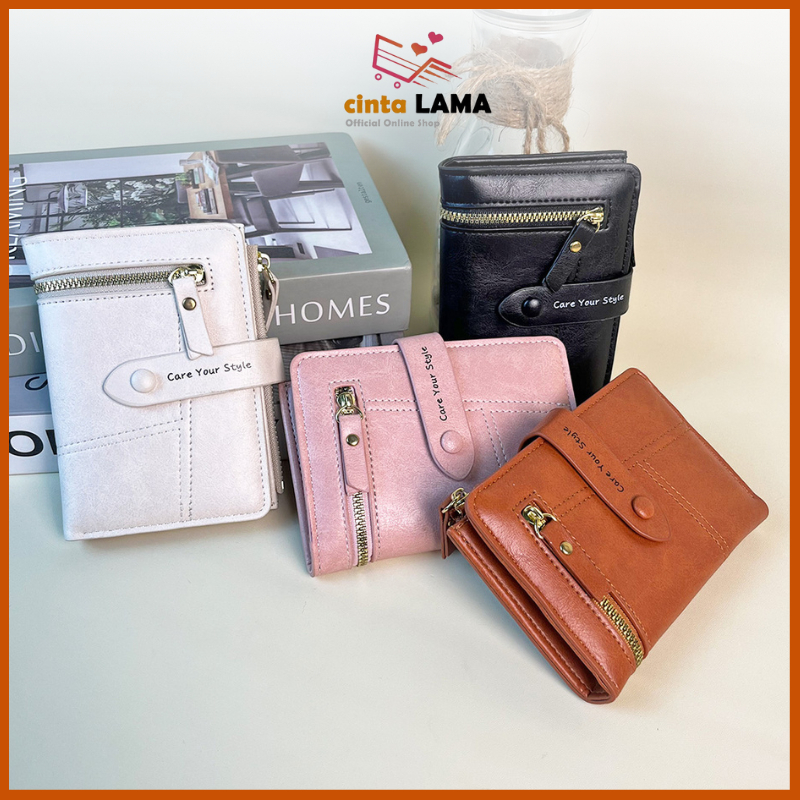 Dompet Lipat Mini Wanita Korea Kecil Kekinian Kulit Fashion Cewek Style Multifungsi Termurah D106