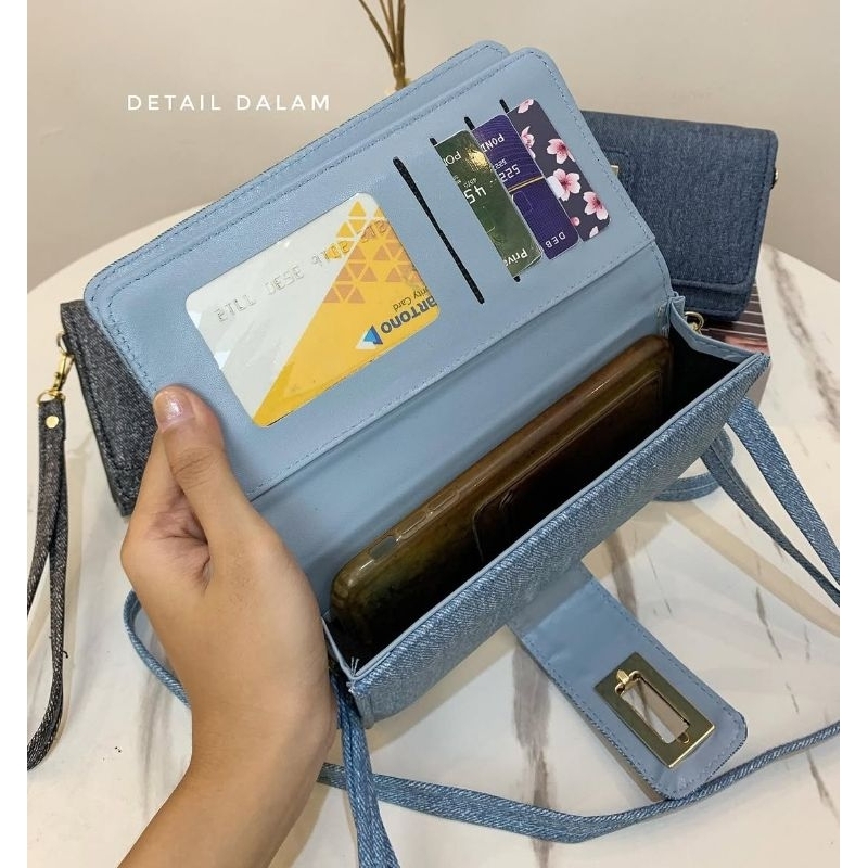 DOMPET WANITA PANJANG MODEL LIPAT AMOR JEANS REFA ORION SAVANA BEXXA MUAT HP 2 TALI/ DOMPET WANITA PANJANG FLO CLEVA POLOS ELVITA 2 TALI