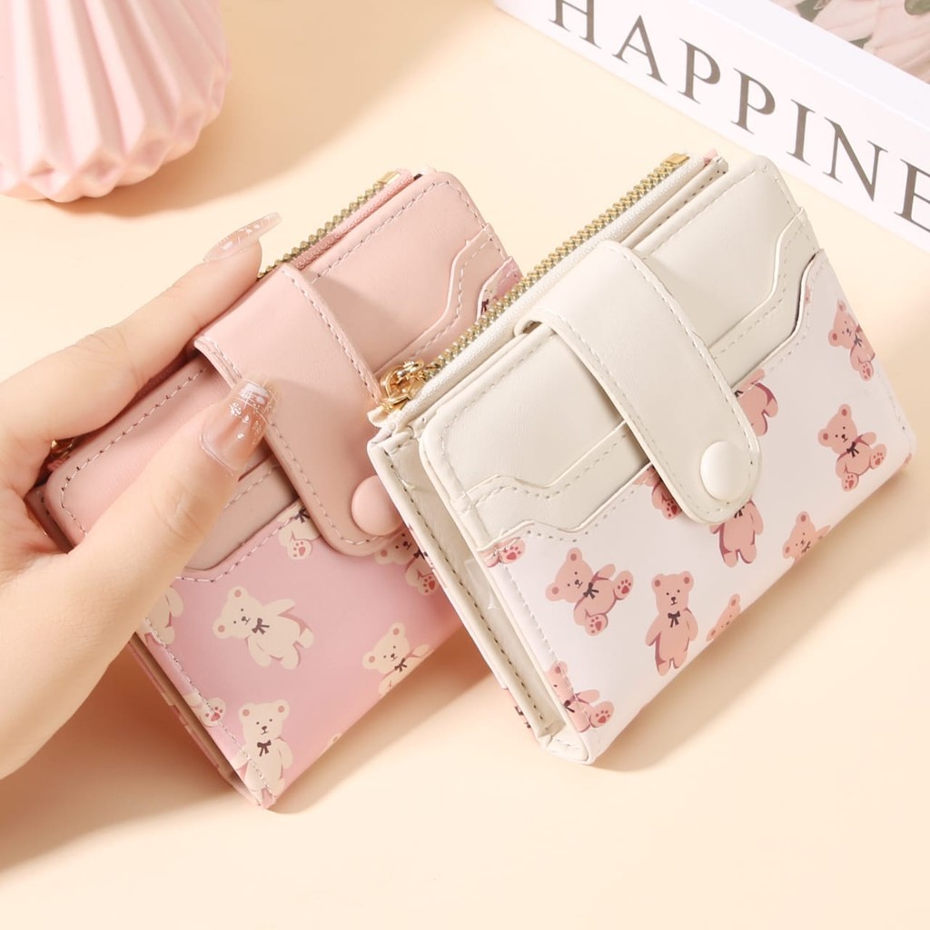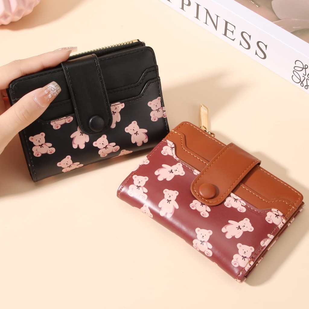 MKS Dompet Wanita Dompet Lipat Kecil Dompet Kartu Uang Mini Beruang Tas Dompet Koin Model Teddy Bear