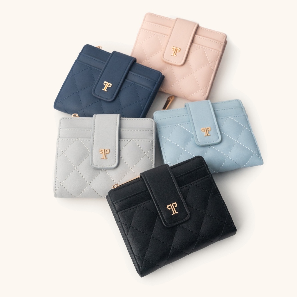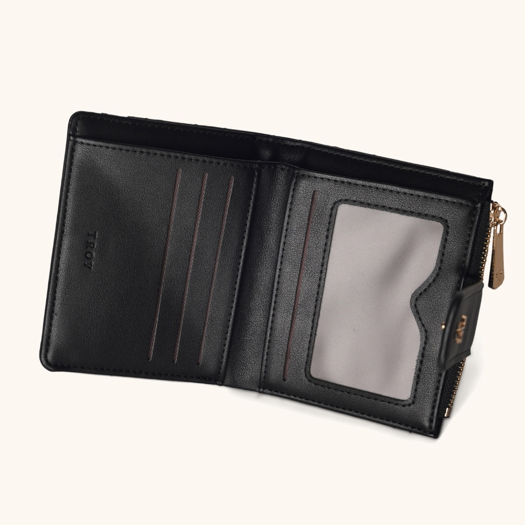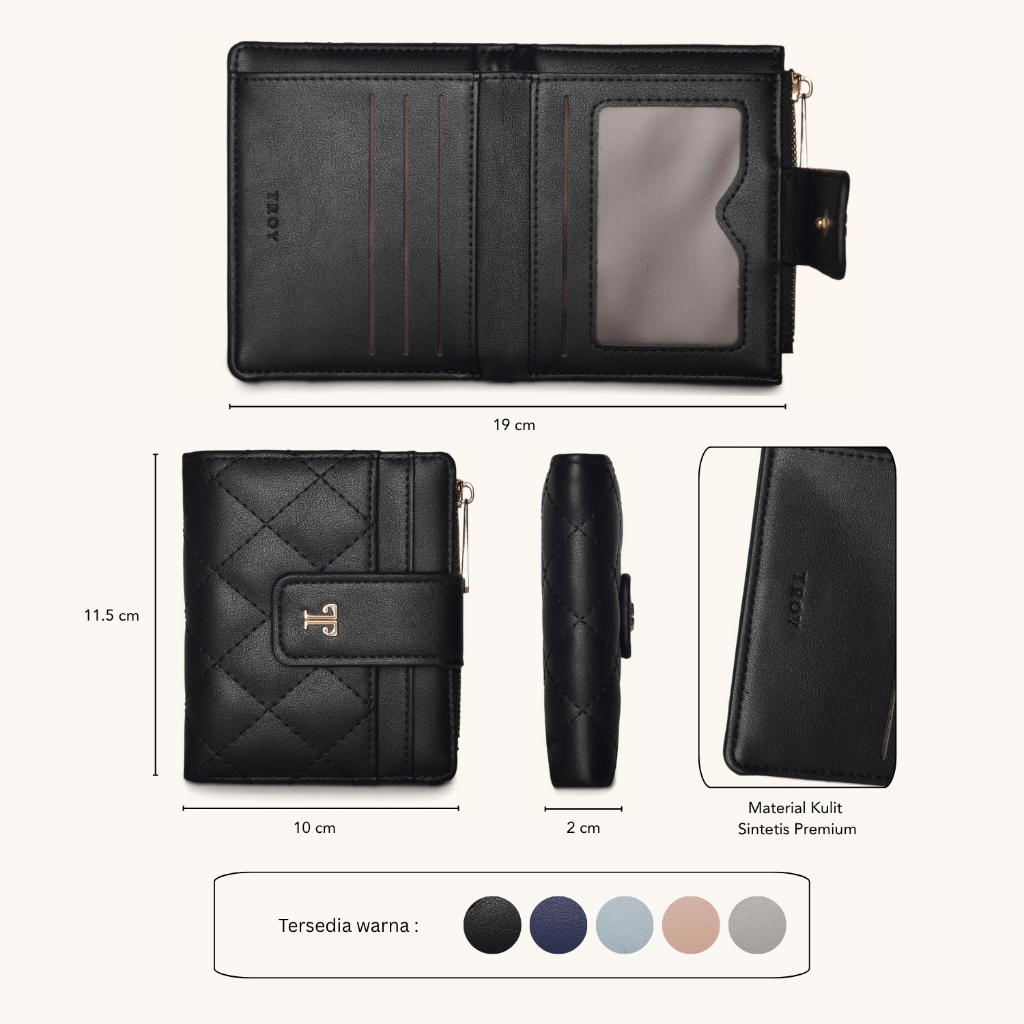 TROY Dompet Wanita Lipat Kecil Bahan Kulit PU dengan Resleting dan kotak Premium Olive