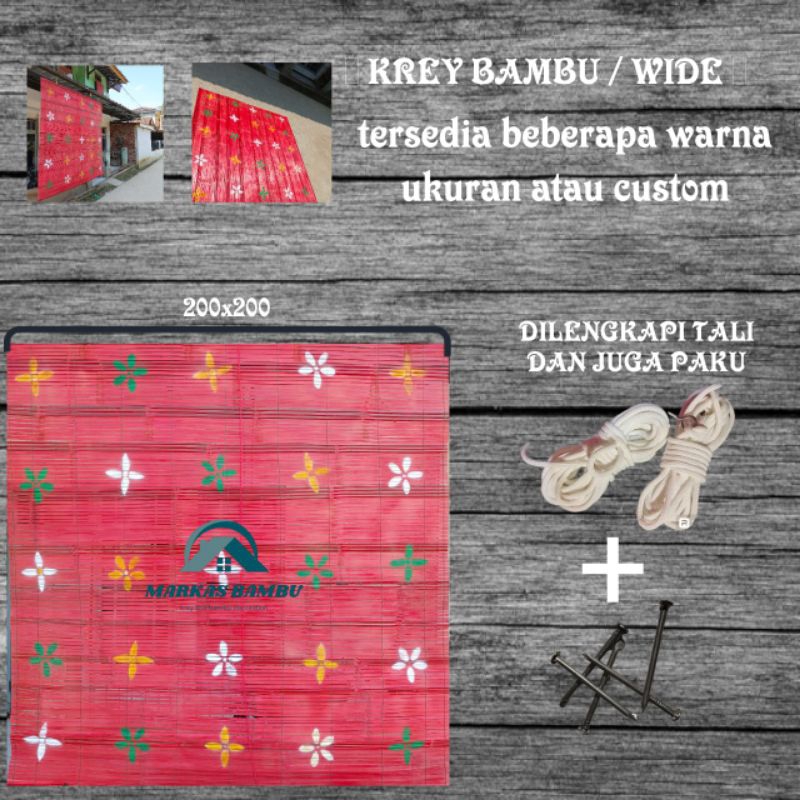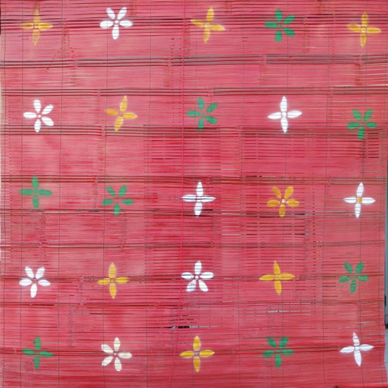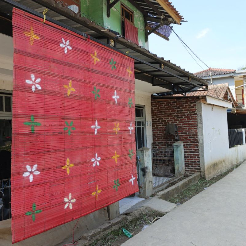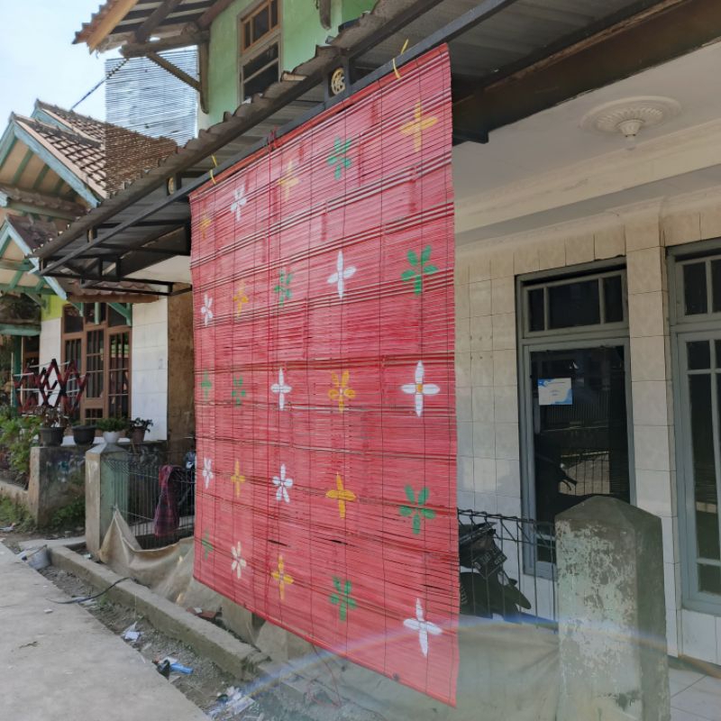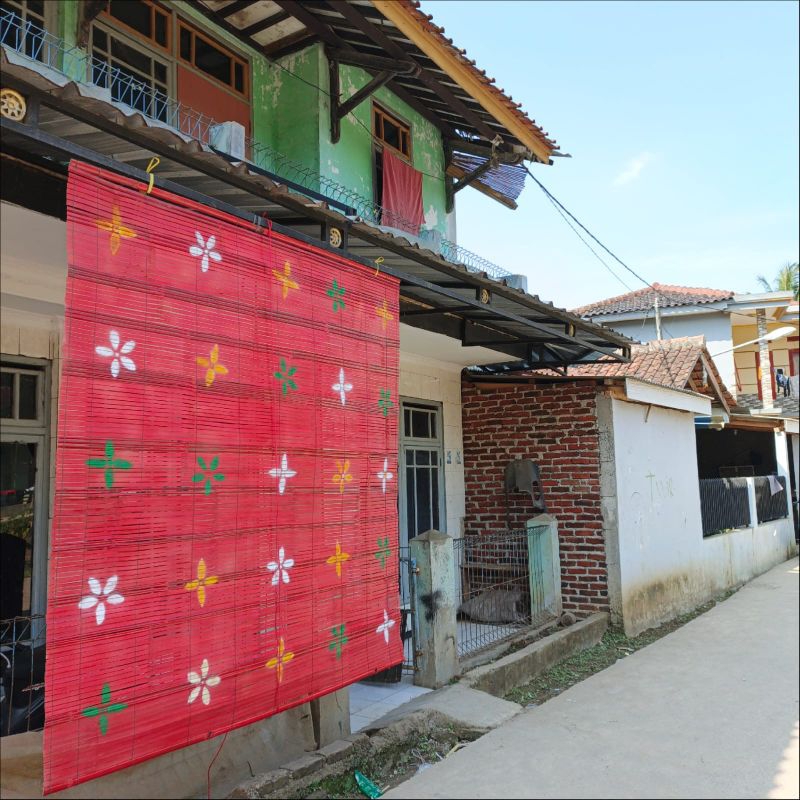 TIRAI BAMBU GULUNG OUTDOOR ANTI AIR 2 METER X 2 METER MOTIP BUNGA MERAH FREE PAKU SAMA TARIKAN