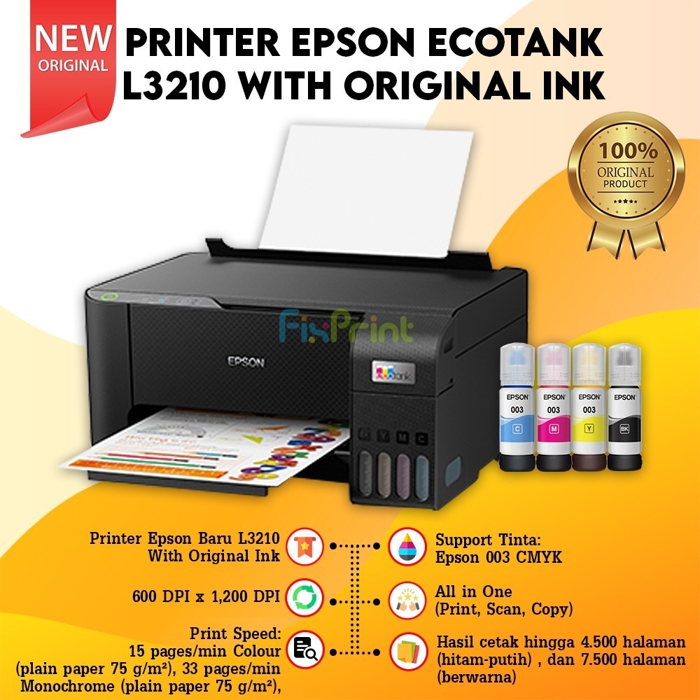 Printer Epson L121 L1210 L3210 L3250 L5290 Eco Ink Tank Printer Epson Infus System Original Garansi Resmi Pengganti L120