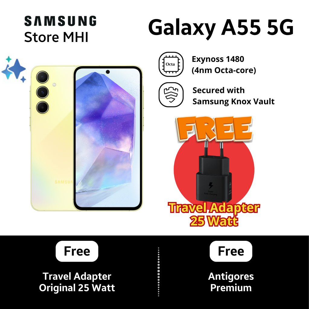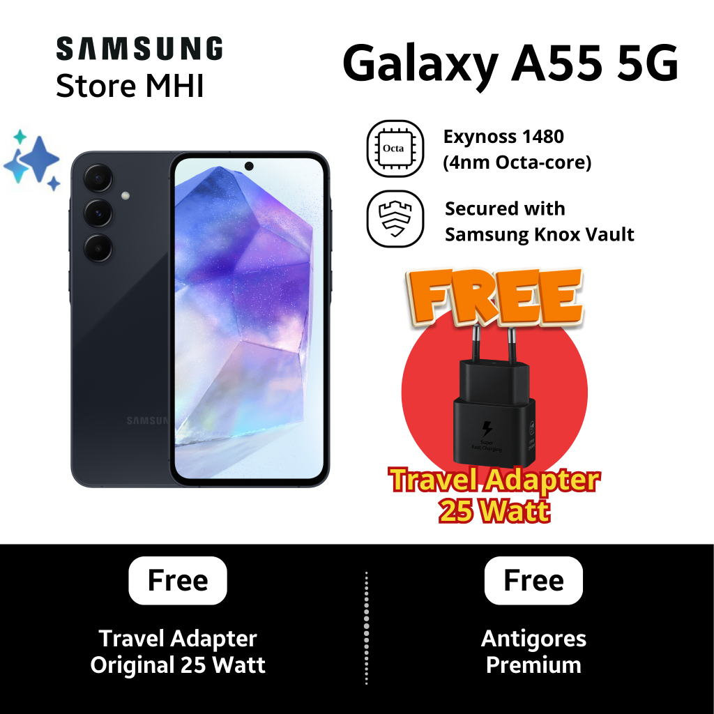 SAMSUNG GALAXY A55 5G 12/256GB FREE ANTIGORES PREMIUM DAN ADAPTER 25WATT