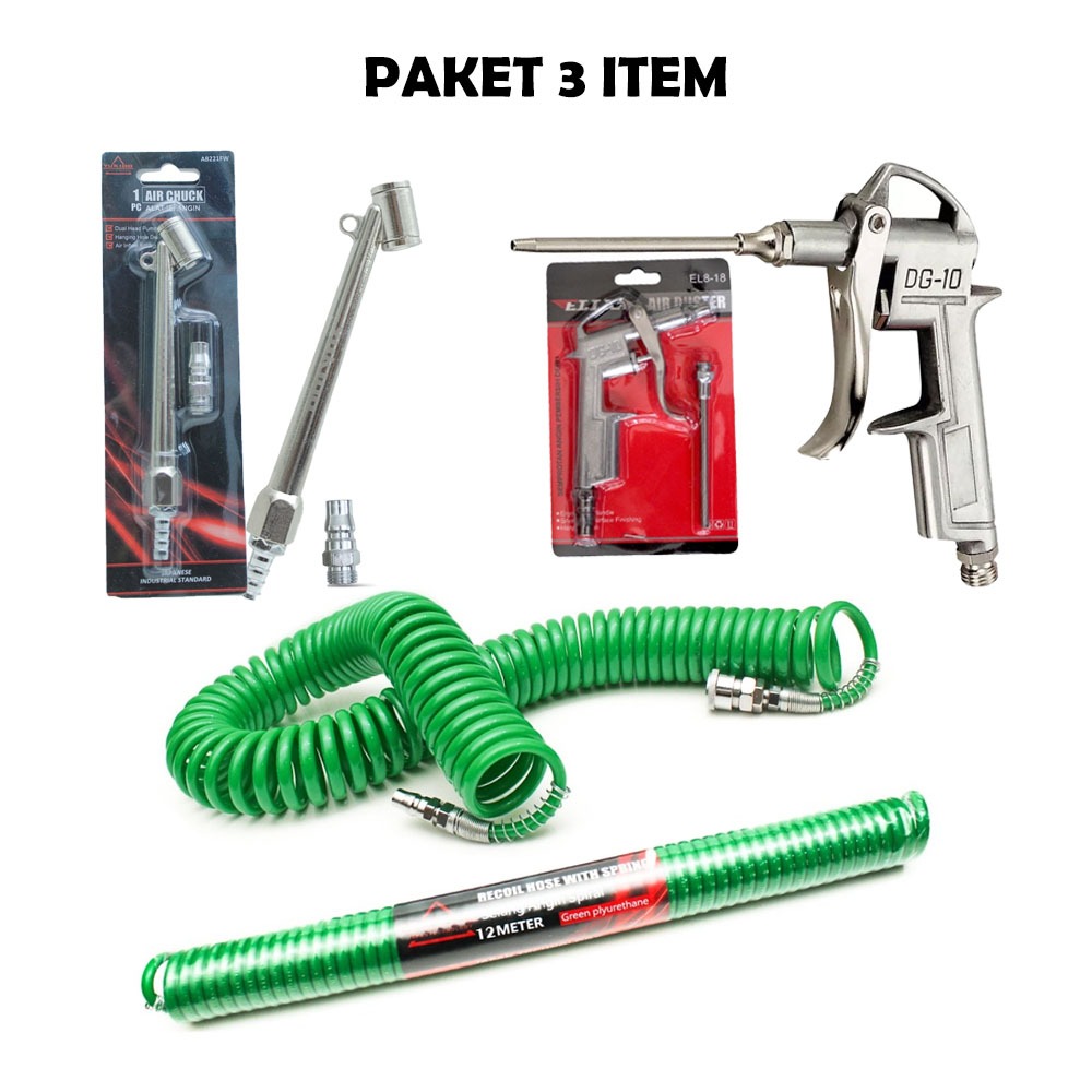 Paket Alat Service 3in1 Selang Angin Kompresor Recoil Spiral - Alat Semprot Angin Air Duster Gun DG-10