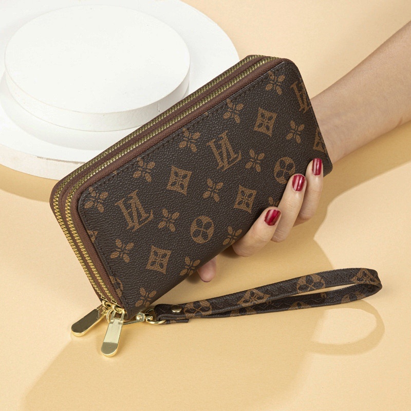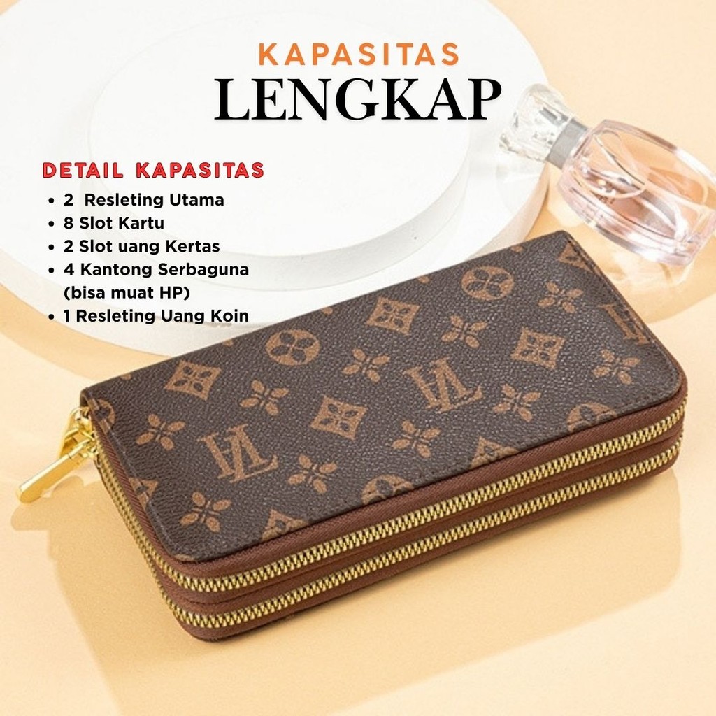 Dompet Panjang Wanita 2 Resleting Premium Kulit Coklat Candy WA446B7 Branded Cewek Slot Kartu Uang Besar Muat Hp Korea Remaja Kekinian Murah Batam