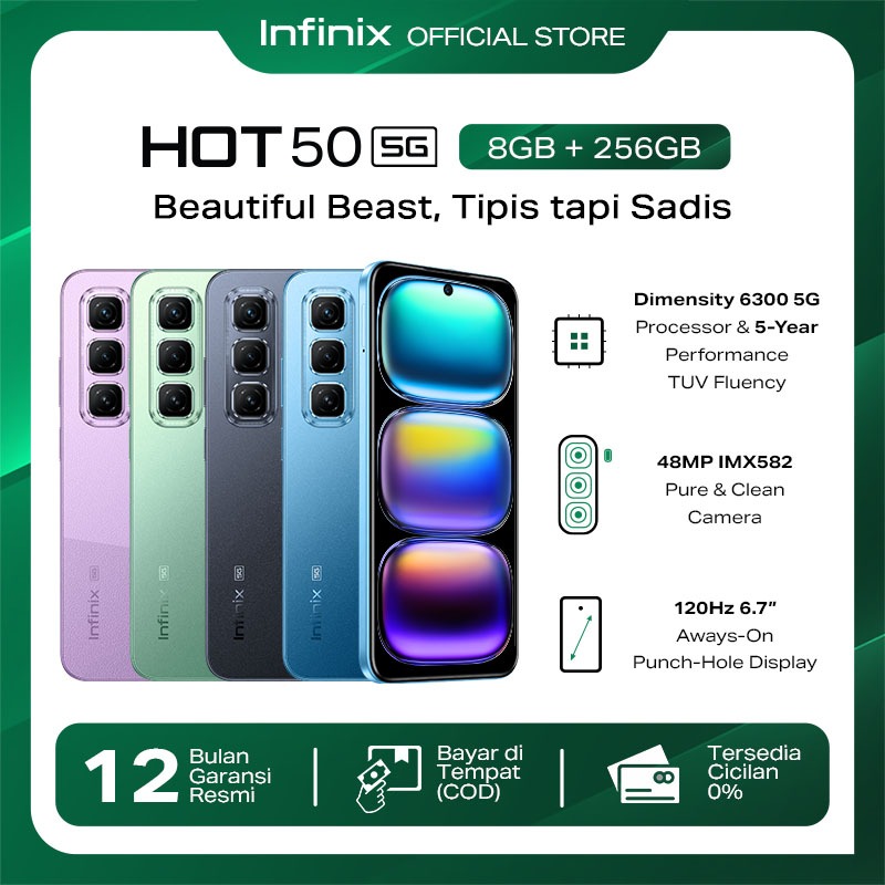 INFINIX HOT 50 pro plus 5G 8/256GB - UP TO 16GB EXTENDED RAM - HELIO D6300 - 6.7 INCH 120HZ - 48MP - 5000 MAH - NFC
