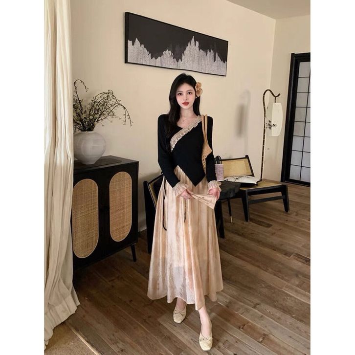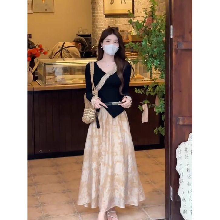 NEW Arrival Setelan Pakaian Wanita Gaya Simple Long Sleeved dress vintage setelan dress- G036 ibakf