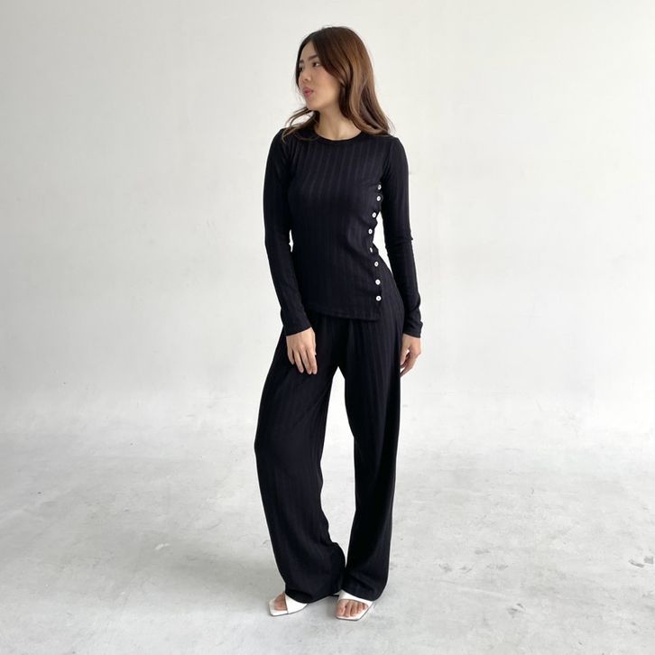 GROSIR EDEN SET | Setelan Wanita Ribbed Knit Set Lengan Panjang Celana Panjang Highwaist Highwaisted Pants abalb