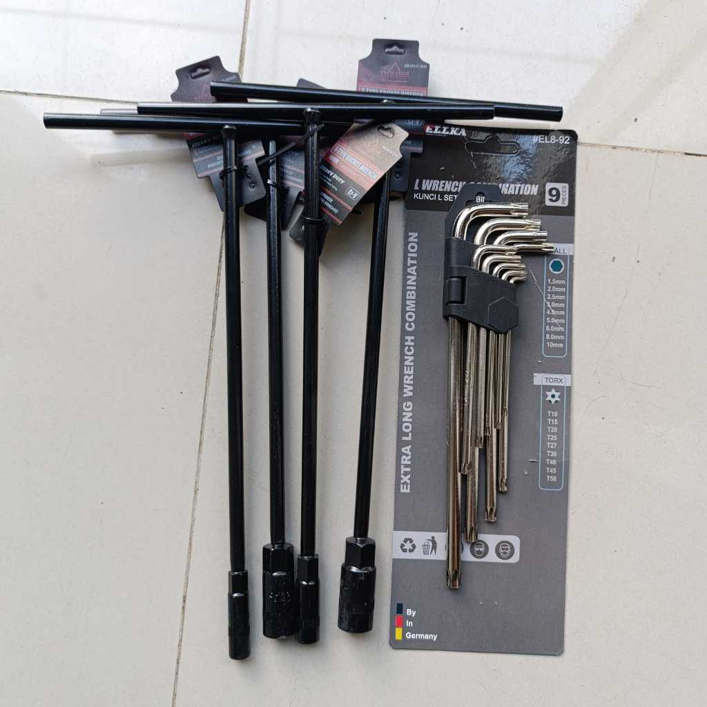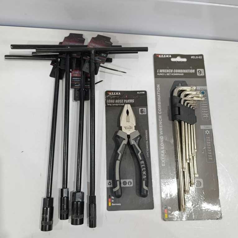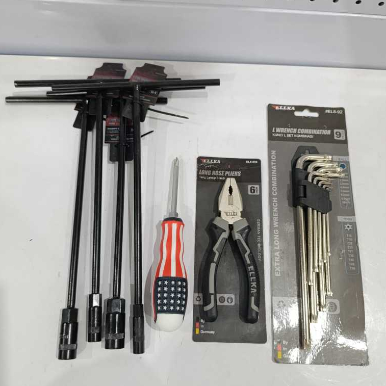 Paket Lengkap 1 Set Kunci T 4pcs 8-10-12-14 mm + Kunci L Set 9 Pcs + Tang Kombinasi 6 inch + Obeng plus minus america