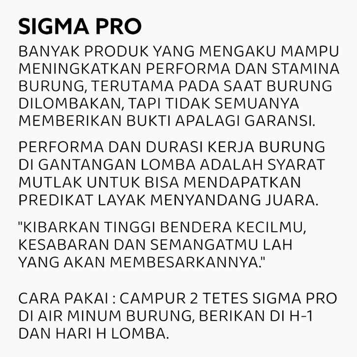 SIGMA PRO Vitamin Penggacor Burung Murai Batu Terbaik, Best Seller, Formulated for Expert Use Only