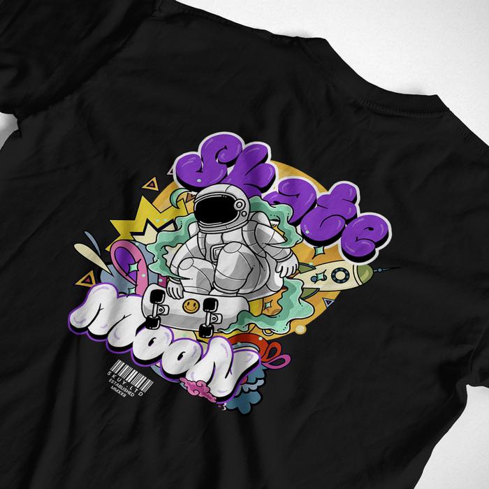 Kaos Skuy Dewasa Pendek Hitam Unisex Baju Cowok Katun Combed 24s Fit Digital Transfer Film |Skate Moon Colorfull SKY74