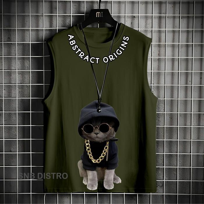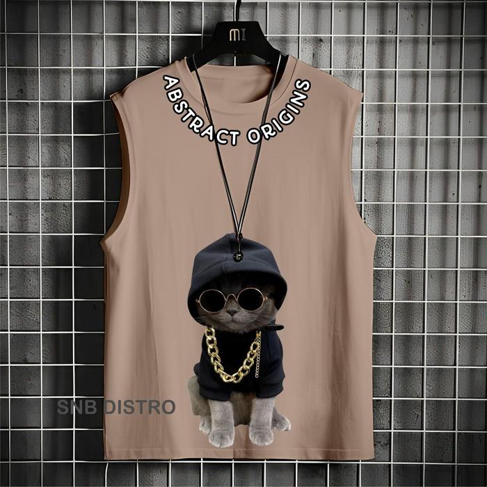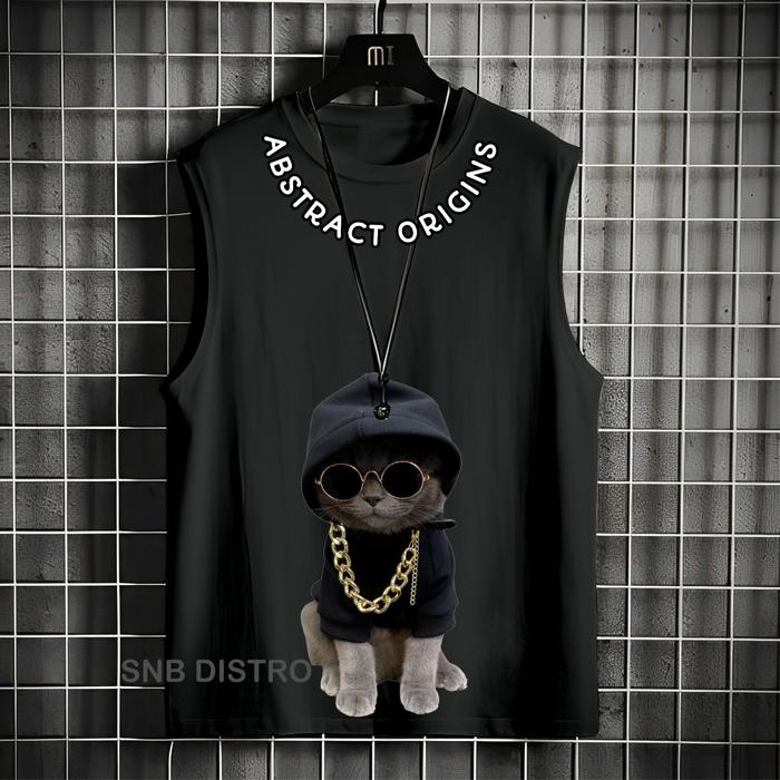 Baju Kaos Singlet Lekbong Santai Pria Motif Kucing / Kaos Tanktop Cowok Trendy Oblong Distro Keren Katun Dewasa Atasan