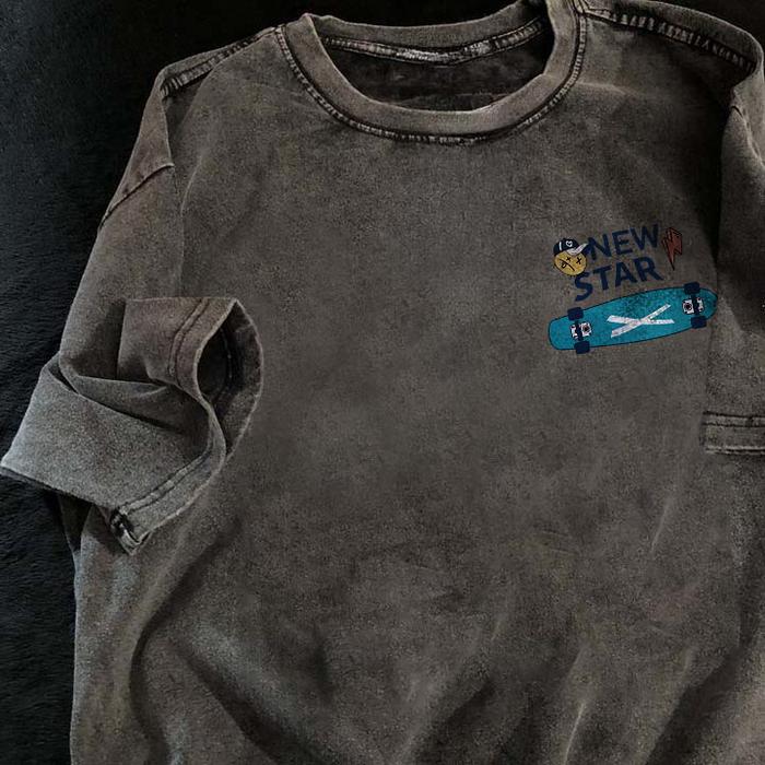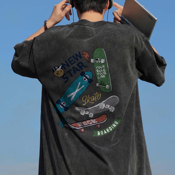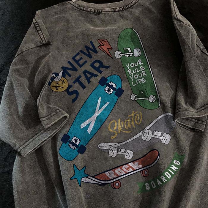 Kaos Pria T-shirt Baju Kaos Oversize | Skateboard Motif | Vintage Longgar Kaos Washed Pria Baju Distro Oblong Pria 100%