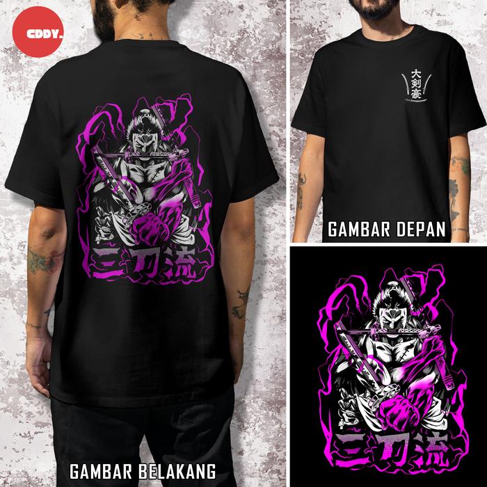 T-Shirt One Piece - Zoro Purple Aura - Kaos Distro 100% Katun Combed 24s - Anime & Japan Style - Streetwear Digital 0zr