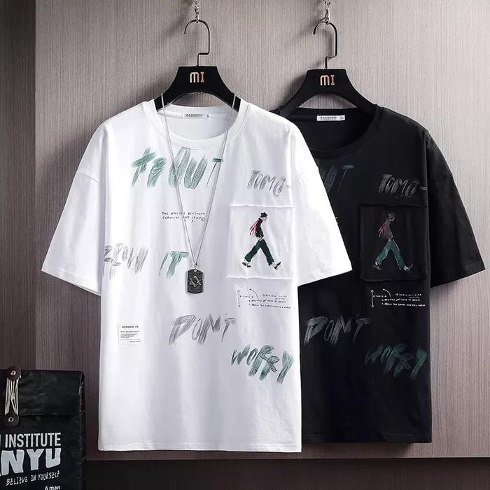 baju oversize tomo M|L,XLKaos disto t-shirt bandung oblong fashion Pria Fit Kain Variasi Atasan Keren Surfing Santai