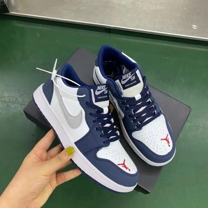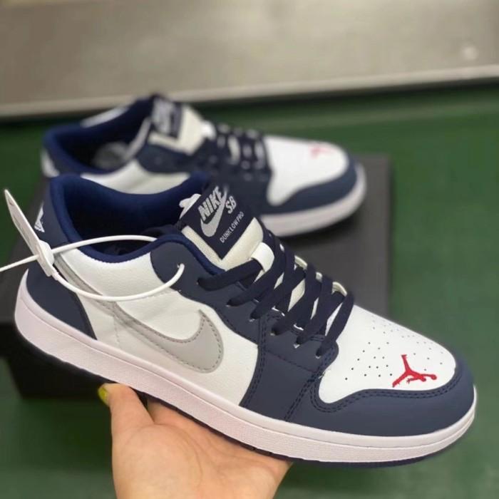 [Star]Sepatu Sneakers Pria Wanita Nik. Air Jordan 1 low Navy silver - 36