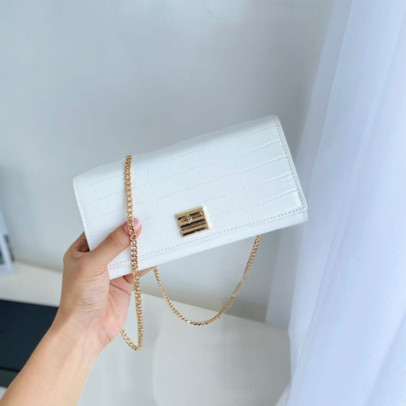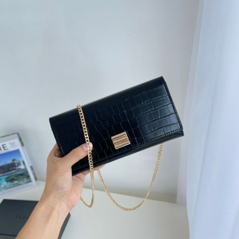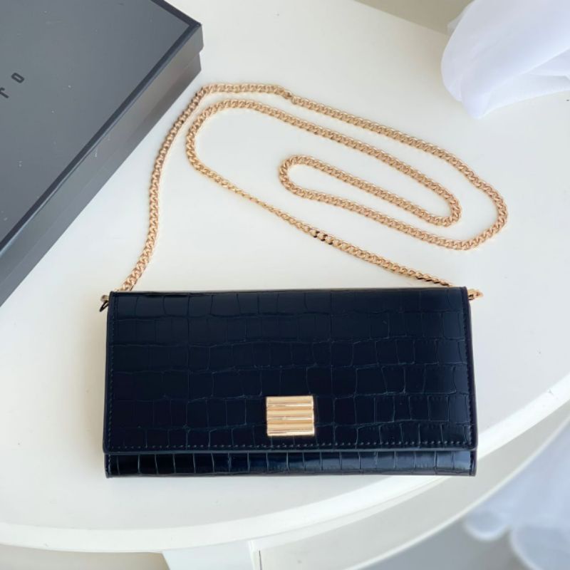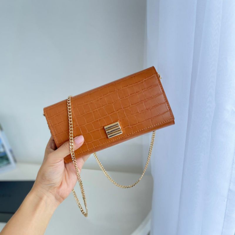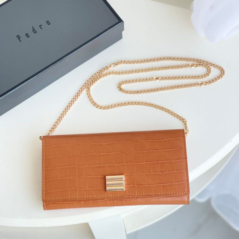 Dompet Pdr - Long Wallet - Dompet Panjang - Dompet Wanita - PDR Embossed Leather Wallet On Chain - Premium Quality - Bisa