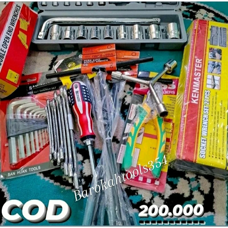Paket kunci shok 27pcs+kunci pas+ kunci T+kunci L+ tang kombi+kunci Y+obeng American + -
