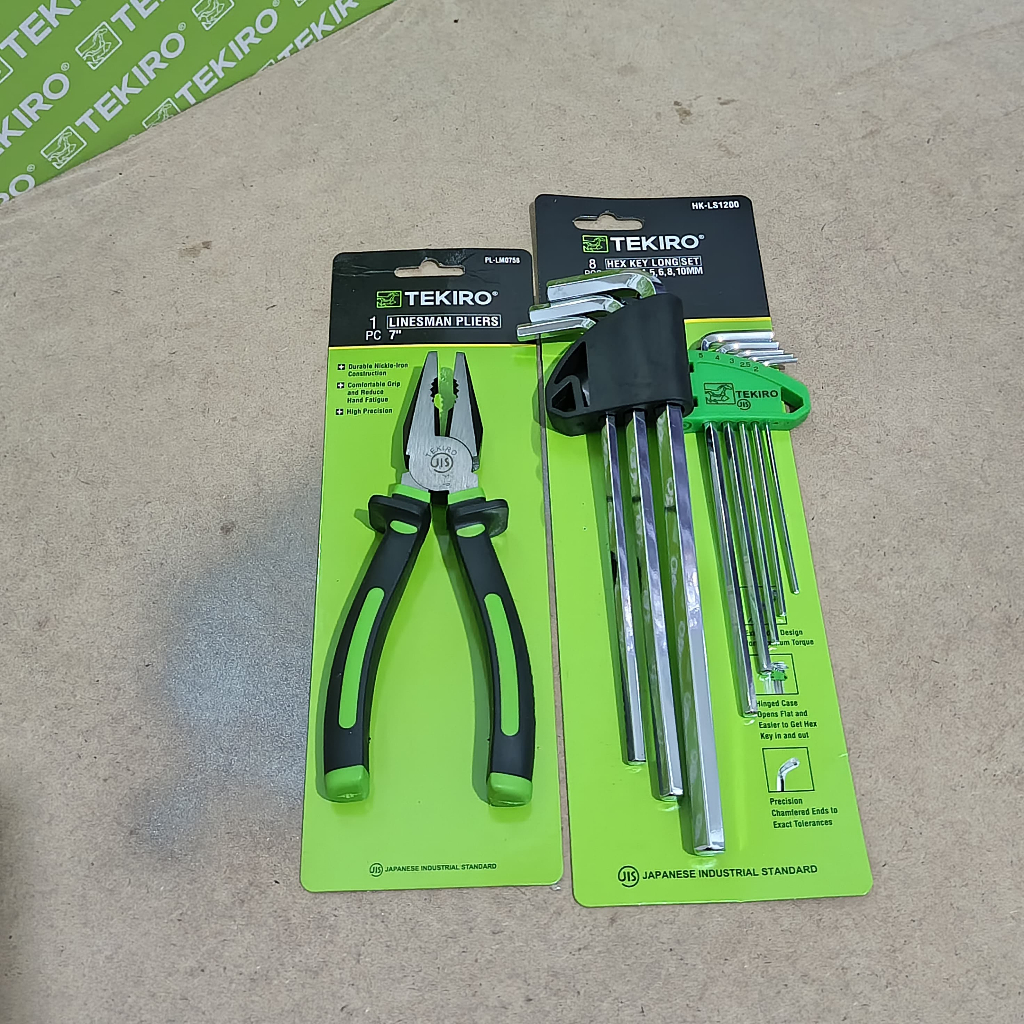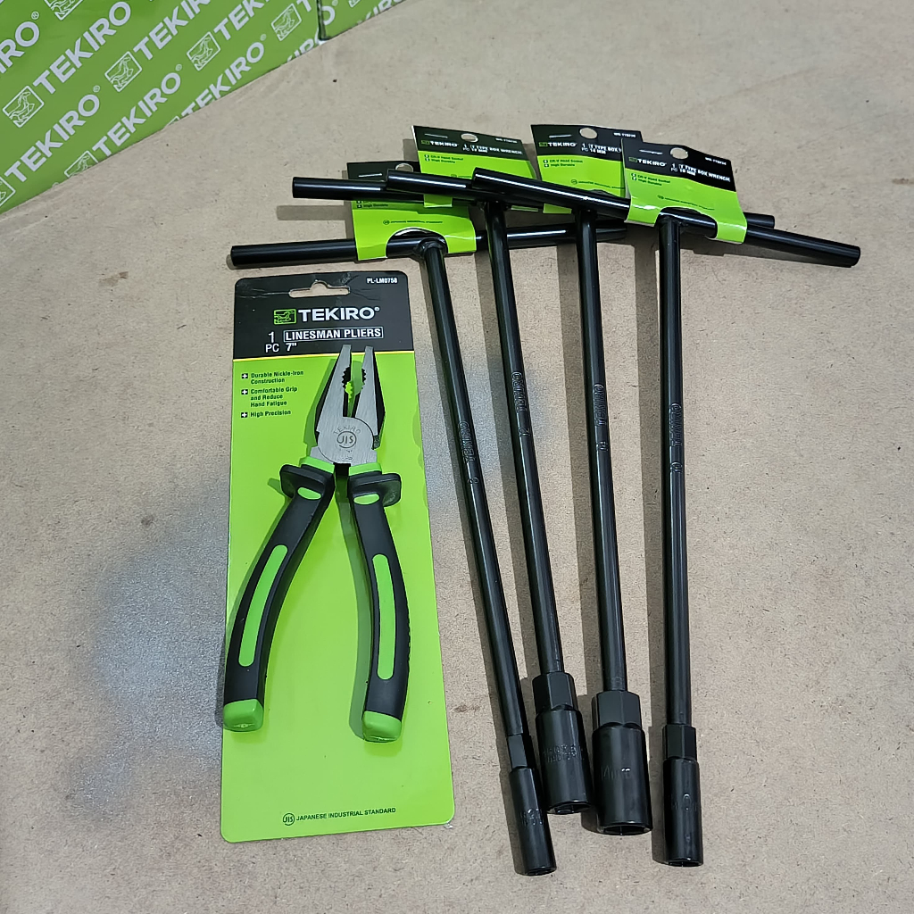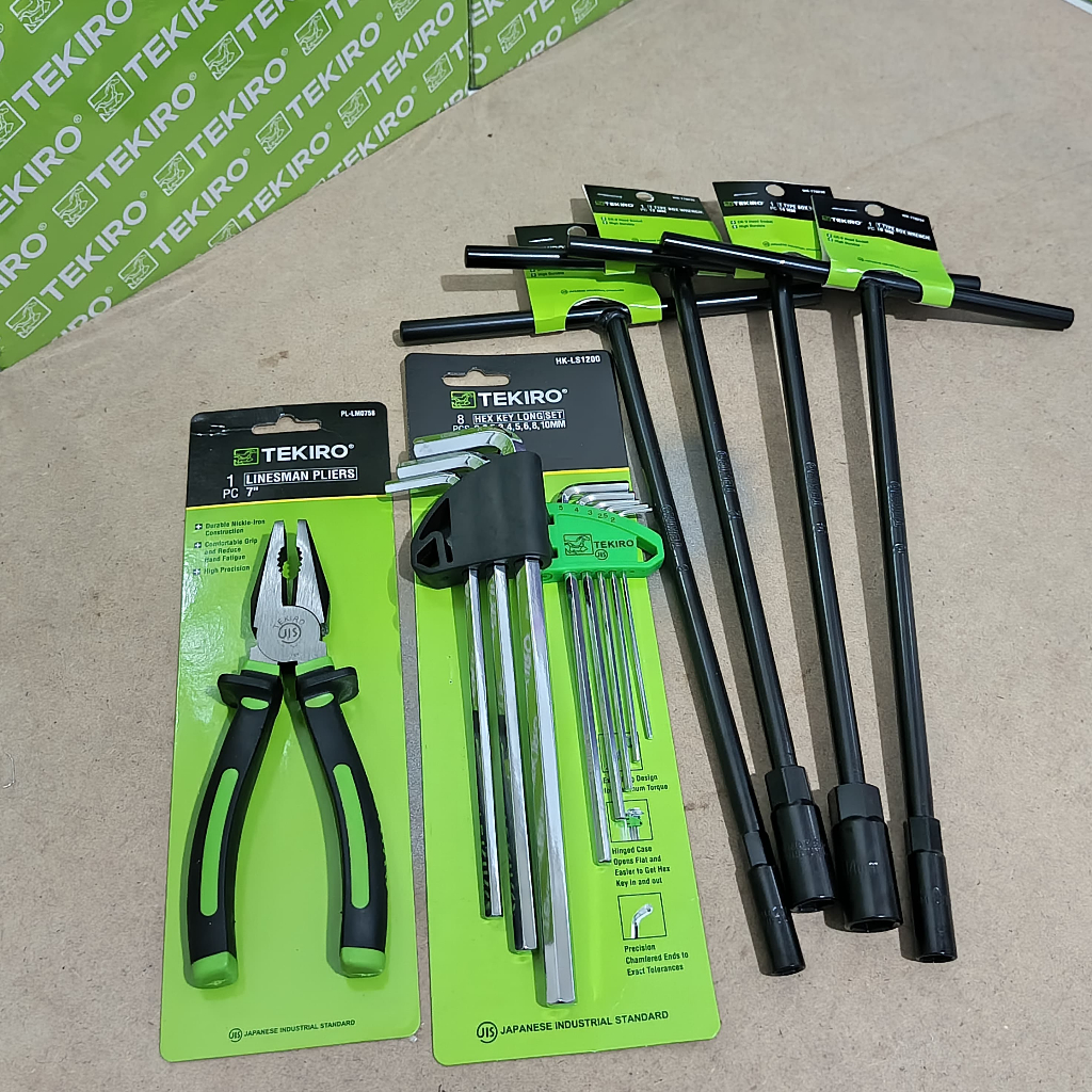 TEKIRO Paket Lengkap Kunci Sok T 8-10-12-14mm + Tang Kombinasi 7Inci + Kunci L Set 8pcs / Perkakas Bengkel Tools Set