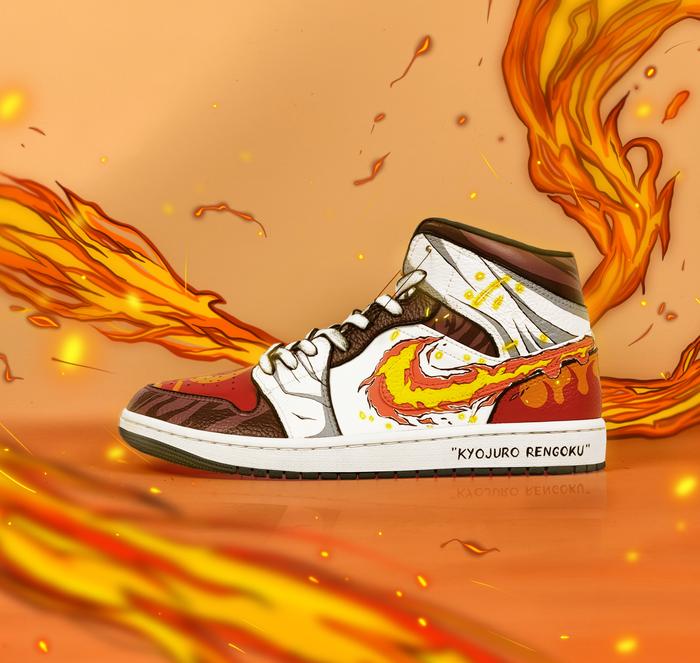[Star]Sepatu Nike Air Jordan 1 Mid Customize Tanjiro X Kyojuro by Partystic