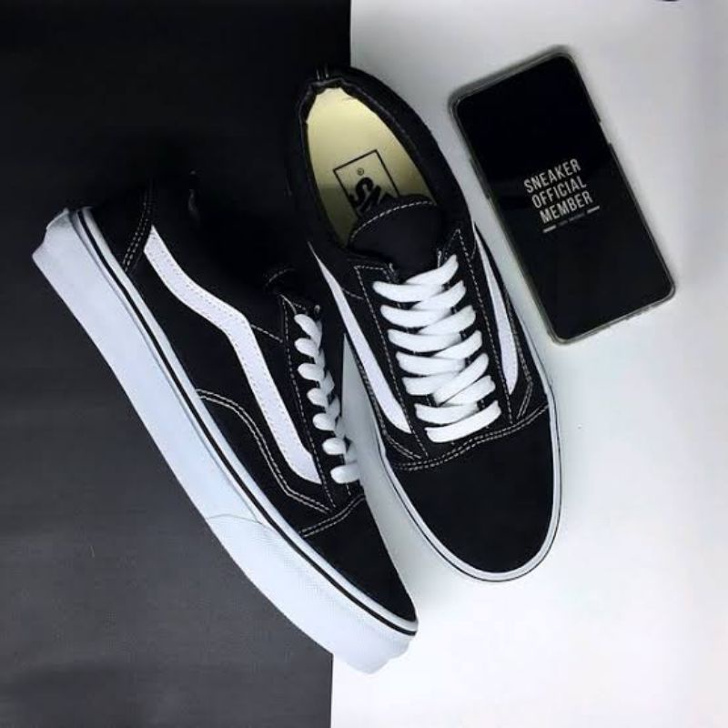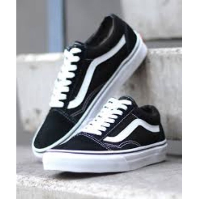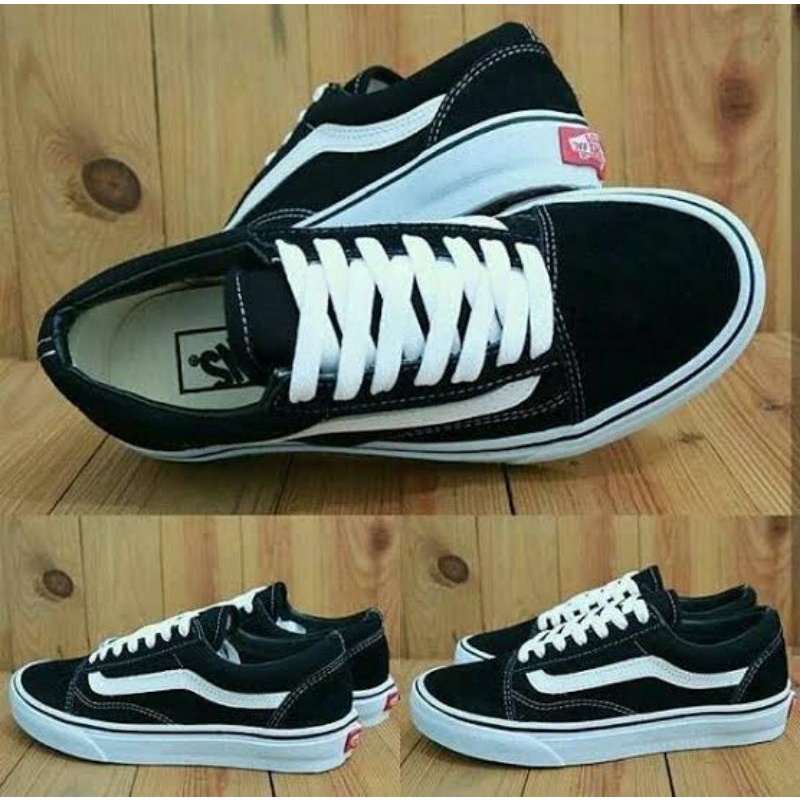 Sepatu Pria Dan Wanita Unisex Clasic Old School, PROMO , Motif List Putih 39-43