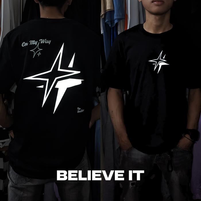 Kaos Reflektif Nyala Believe It Tshirt Distro Pria Wanita Cotton Combed 30s kdr30s