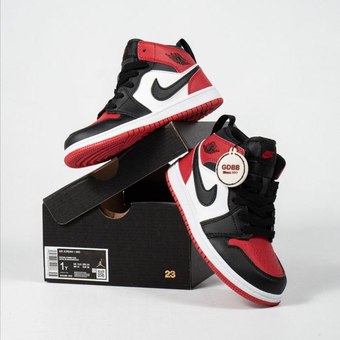 [Star]Sepatu Anak Air Jordan 1 High Bred Toe for KIDS Sneakers - 27
