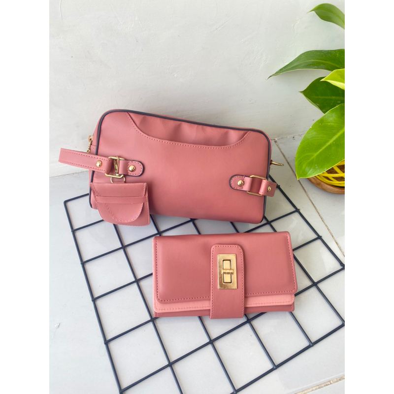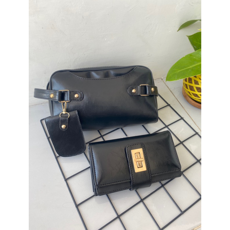 Paket Couple Pouch Bag William + Dompet Savana ( READY STOCK) Handbag Kulit Cewek Cowok